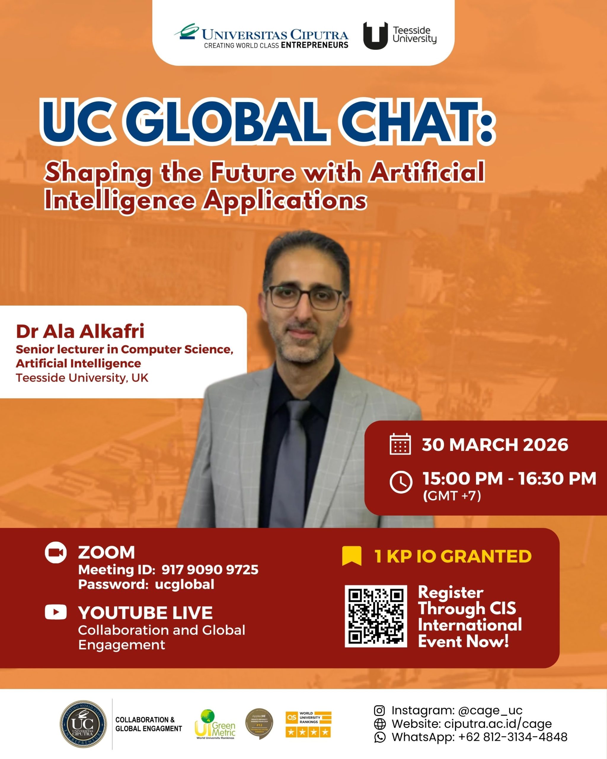 Discover how Artificial Intelligence is transforming industries, innovation, and the future of technology. Join us for an insightful session exploring how AI applications are shaping tomorrow’s world! 🎙 Speaker: Dr Ala Alkafri Senior Lecturer in Computer Science, Artificial Intelligence Teesside University, UK 🇬🇧 🗓 30 March 2026 ⏰ 15:00 – 16:30 PM (GMT +7) 📍...