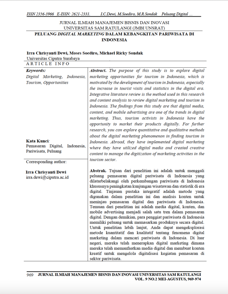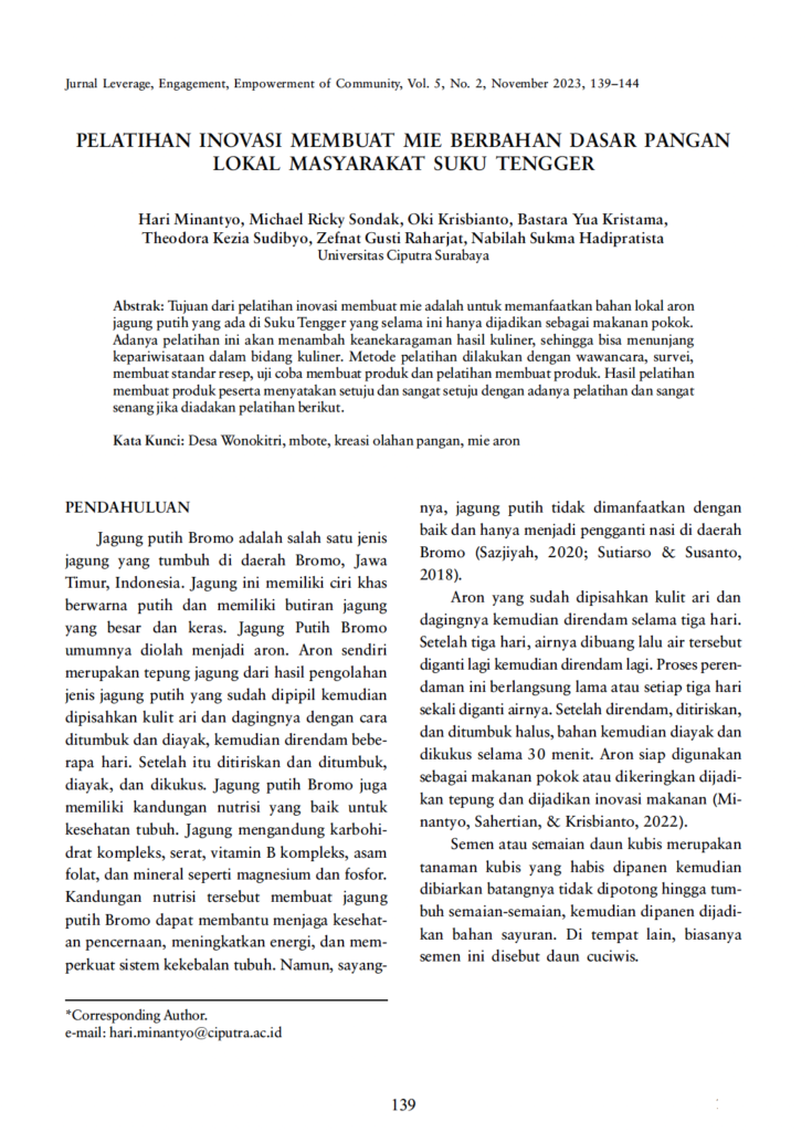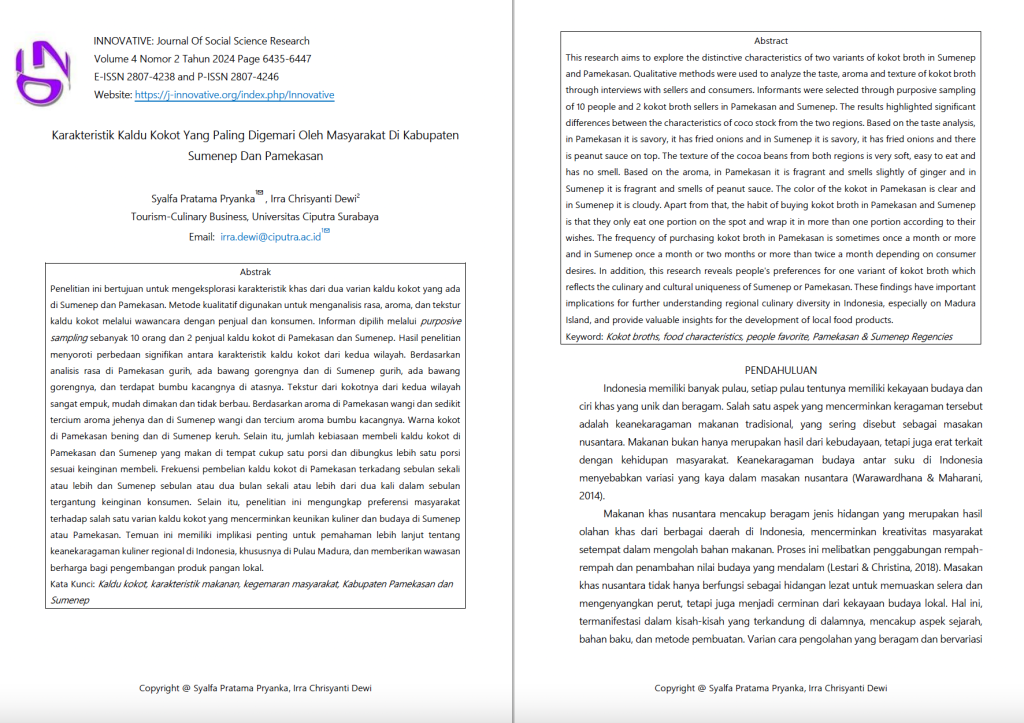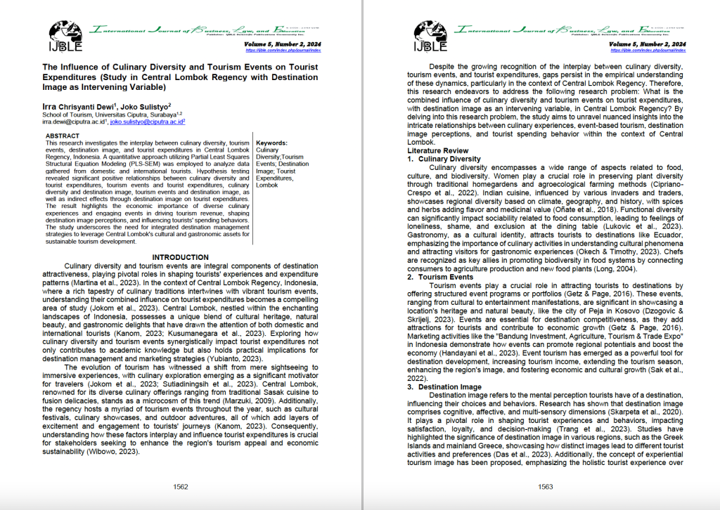 Tourism-Culinary Business (CBZ) presents several books, publications based on research activities and/or community service activities. Topics related to product creation, culinary business, entrepreneurship, business & management and tourism subject. This publication also involves students who are appointed from the form of a Final Project or independent research.