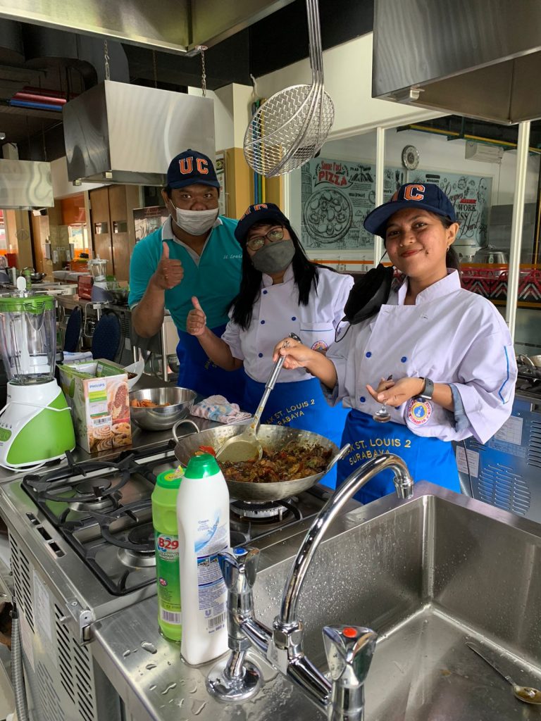 Selama 2x pertemuan pada hari Sabtu, 15 dan 22 Januari 2022 Bapak Ibu guru yang mengajar PKWU dari SMAK St. Louis 2 Surabaya mendapatkan pengetahuan lebih mengenai kuliner dimana nanti bisa diterapkan dalam pengajaran PKWU di sekolah.. Tujuan pelatihan ini adalah untuk memberikan pembekalan praktis kepada beberapa pendidik yang mengampu mata pelajaran Global Entrepreuner agar menjadi terampil dan kompeten pada bidangnya.