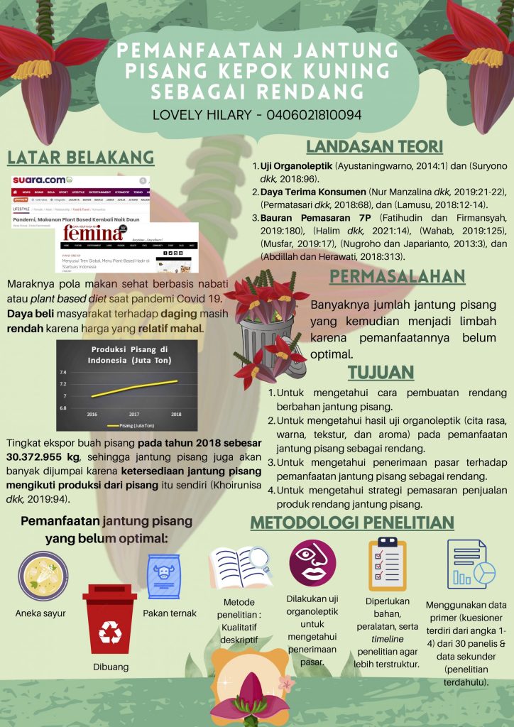 menghadirkan beberapa penelitian yang ditujukan untuk kreasi olahan pangan, bisnis kuliner, entrepreneurship, bisnis dan manajemen serta topik mengenai pariwisata.