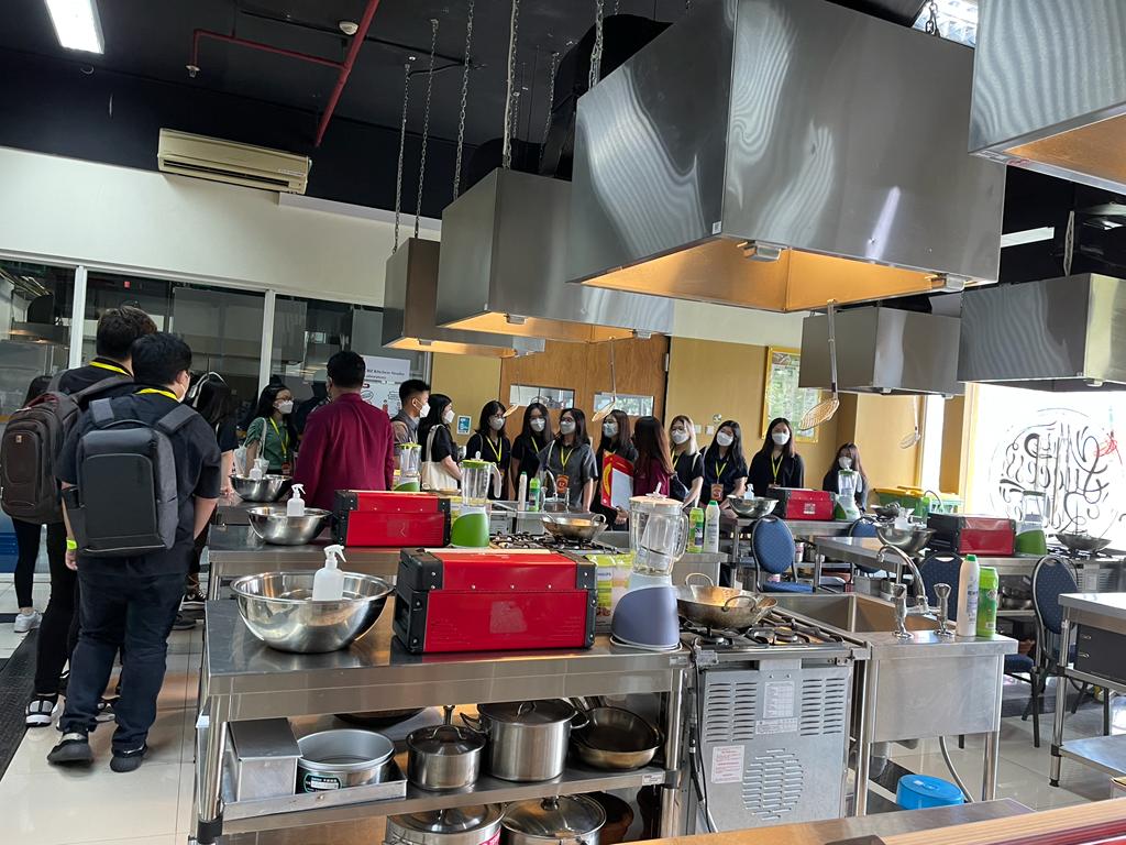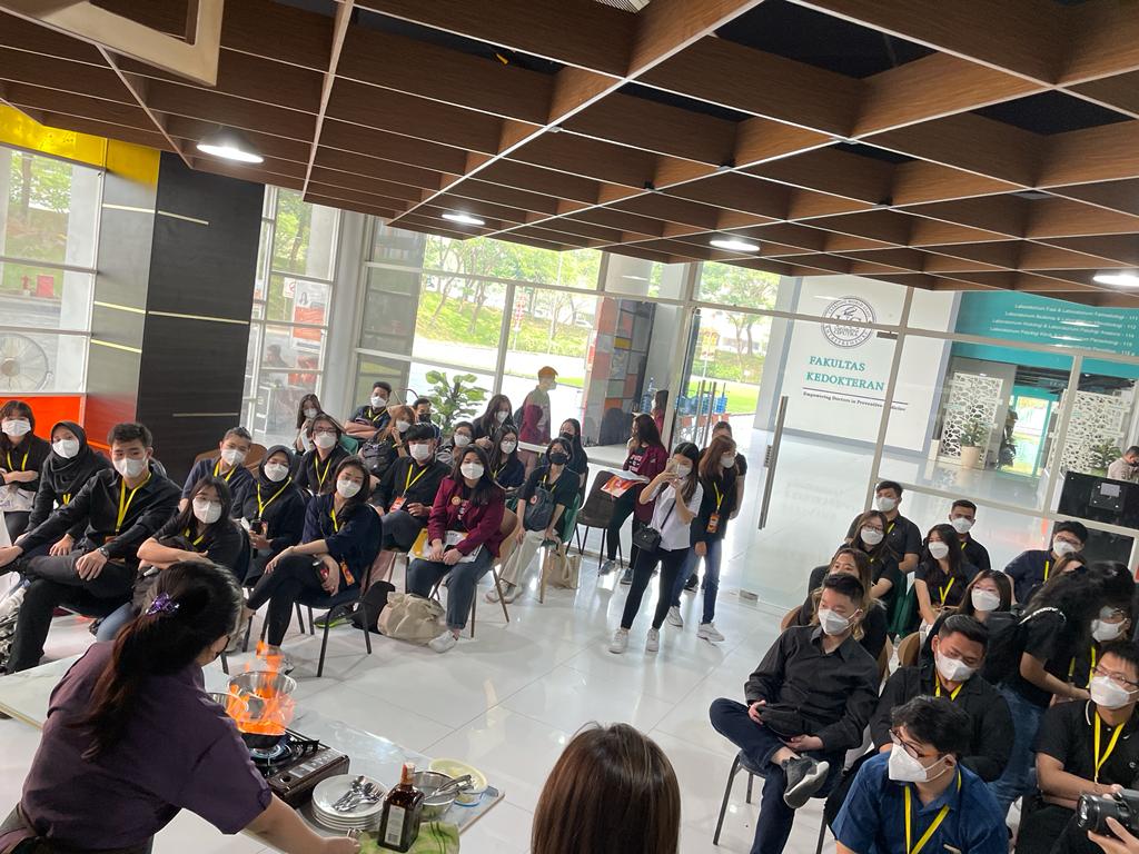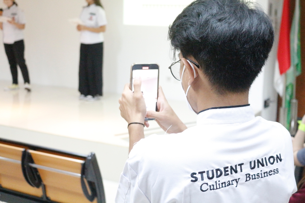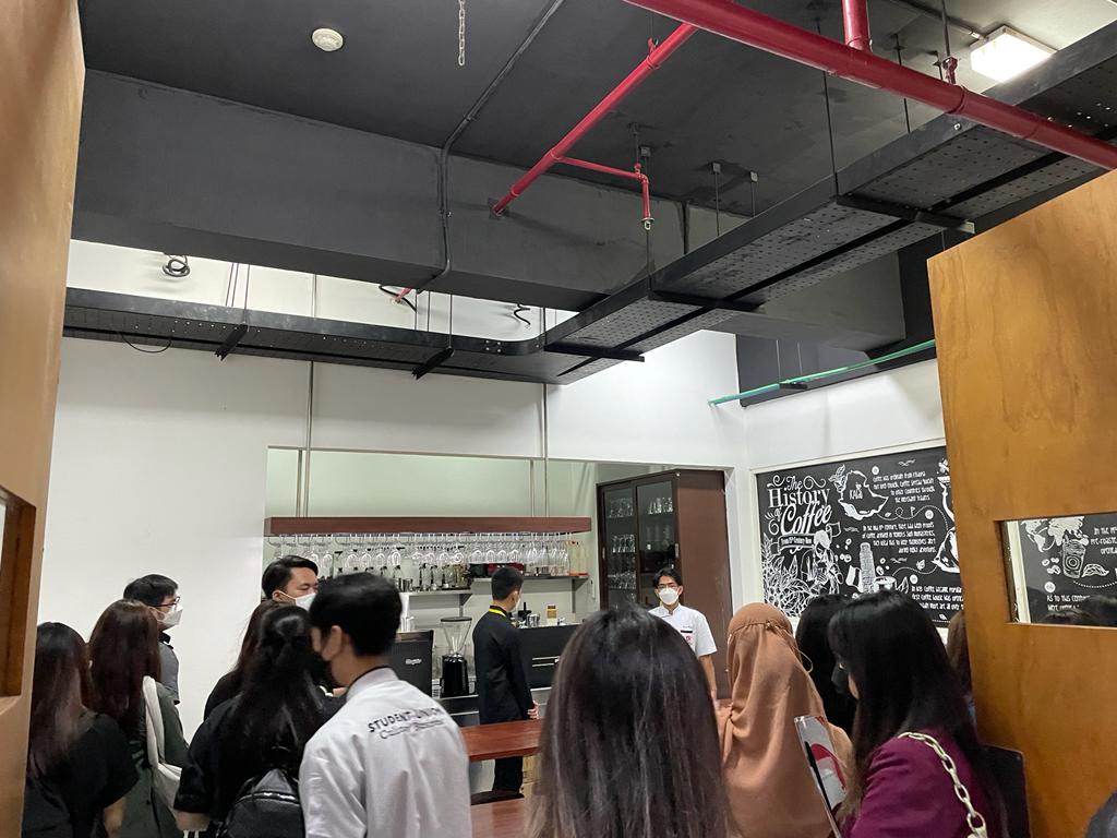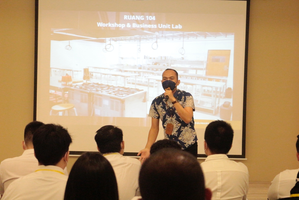 Setelah mendengarkan penjelasan, mahasiswa diajak ke lantai 1 untuk melihat laboratorium yang akan digunakan selama 4 tahun ketika berkuliah, yang dibantu oleh Student Union Culinary Business.
