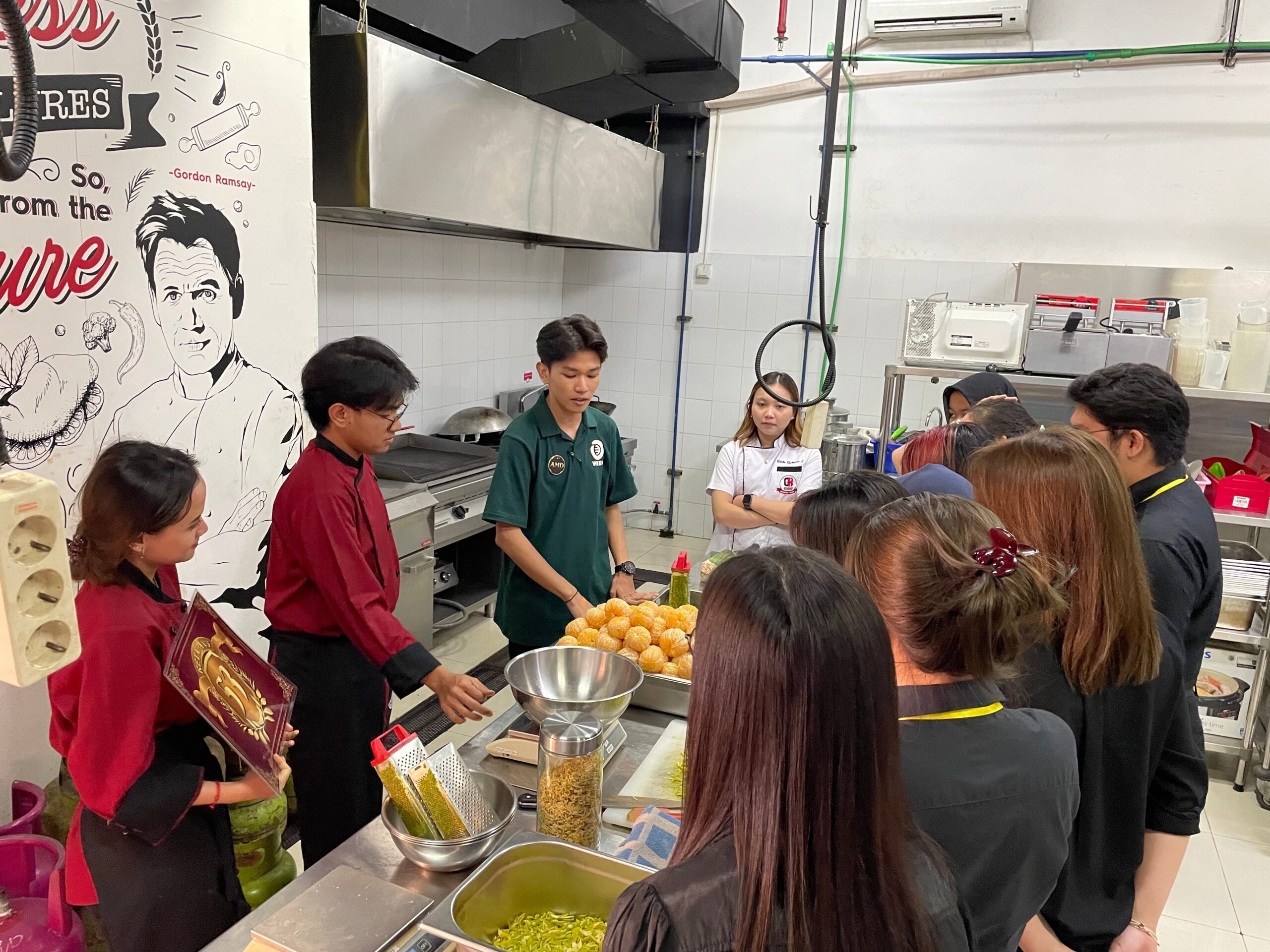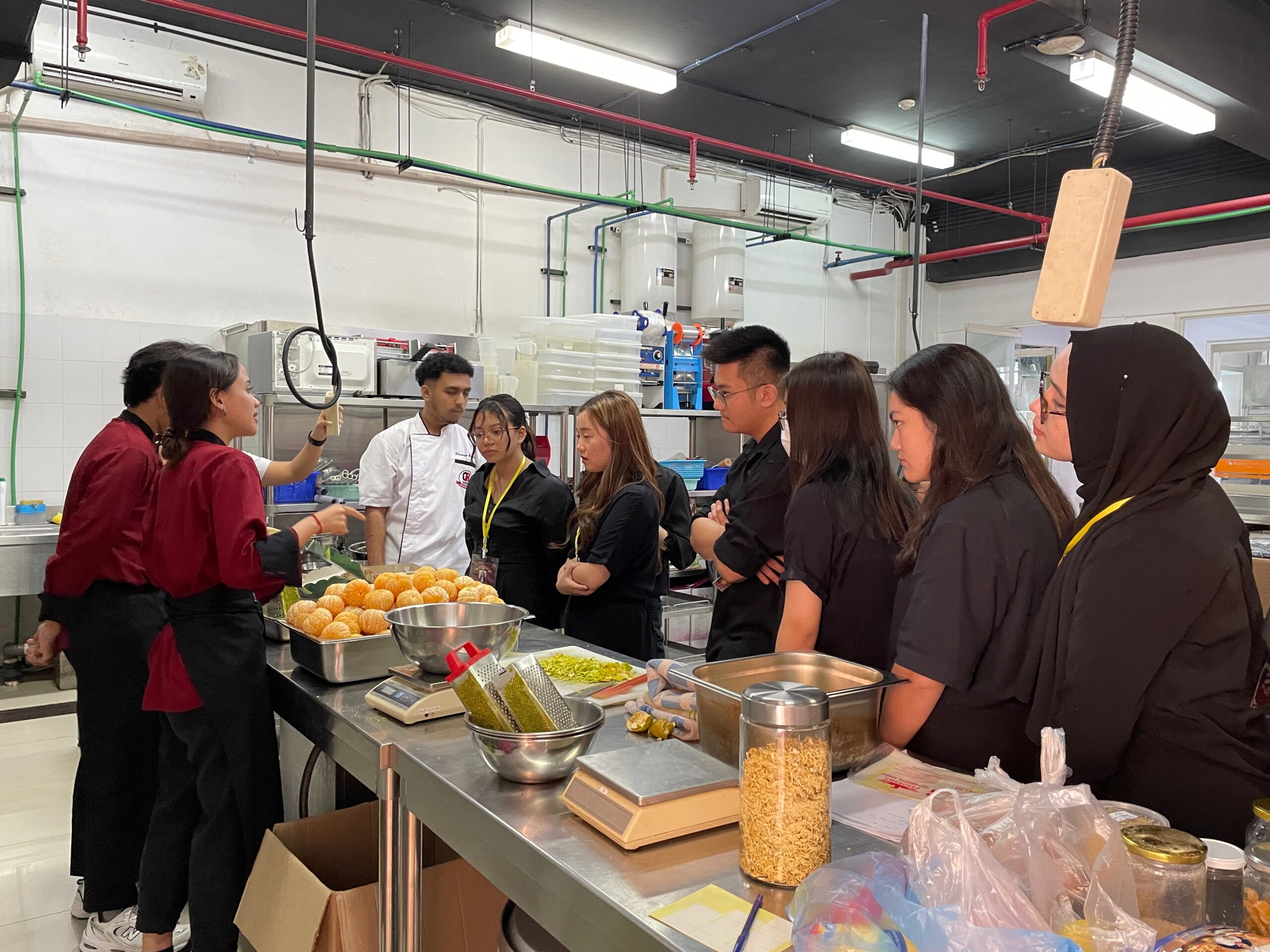 Setelah mendengarkan penjelasan, mahasiswa diajak ke lantai 1 untuk melihat laboratorium yang akan digunakan selama 4 tahun ketika berkuliah, yang dibantu oleh Student Union Culinary Business.