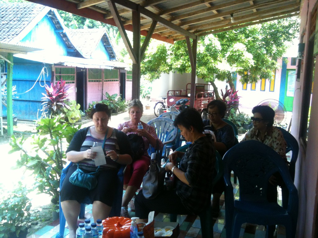 Perjalanan di lanjutkan ke Tresna Art, peserta menikmati keindahan rumah adat Bangkalan. Tresna Art di lengkapi dengan koleksi batik Gentongan yang merupakan batik “kalangan atas” bagi masyarakat Madura sendiri, dimana proses pembuatannya bisa memakan waktu tahunan. Peserta juga bisa berbelanja berbagai macam makanan oleh-oleh khas Madura sampai bahan atau obat-obatan pembuat batik. Lalu, peserta berisirahat di gazebo yang rindang di tengah kebun salak sambil menikmati Soto Jagung dan Es Pokak. Soto Jagung juga merupakan salah satu menu khas Bangkalan yang sudah hampir punah. Sedangkan Es Pokak, adalah minuman khas Madura yang terbuat dari berbagai macam rempah-rempah.