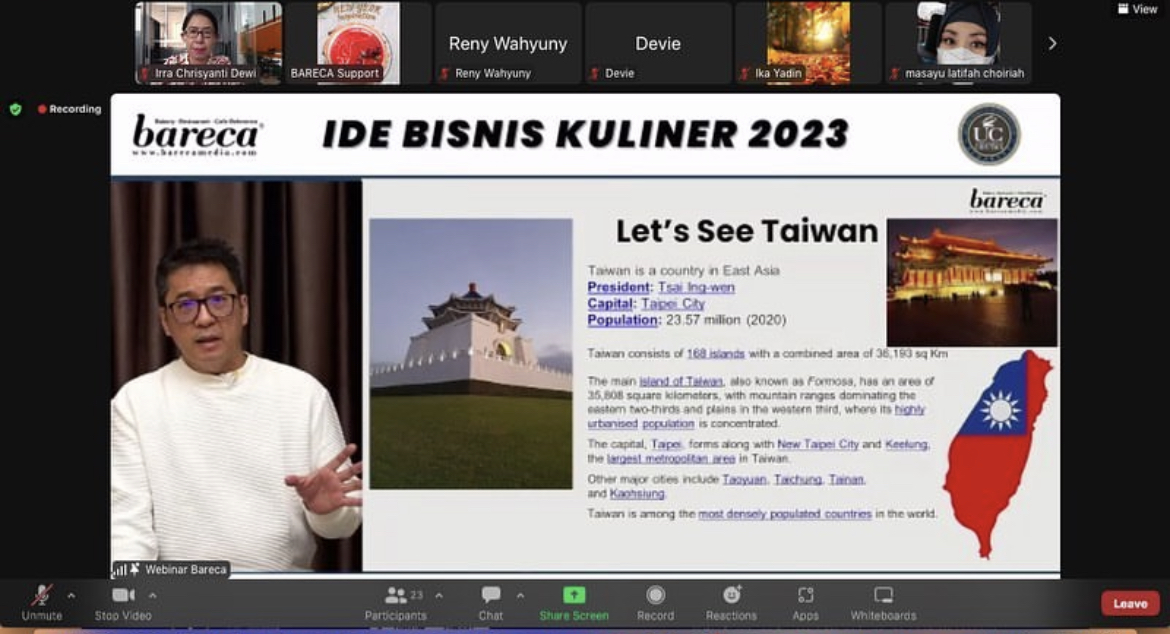 Pembahasan seminar dimulai dengan pengantar industri makanan dan minuman di Taipei yang berkembang dan beberapa trend kulinernya sempat masuk ke Indonesia seperti roti, snack, hingga minuman. Gambaran tentang daeah Taichung dan Tainan yang banyak menyajikan budaya dan kuliner dan menjadi terkenal hingga kemana-mana. Ide makanan dan minuman tersebut akhirnya masuk ke Indonesia dan menjadi trend serta booming pada saatnya sepeti minuman boba. Dalam kondisi normal baru, penjualan makanan dan minuman di Taiwan per Juni 2022 mencatat lonjakan sebesar 60% jika dibandingkan pada tahun 2021 lalu. Catatan ini merupakan yang tertinggi sejak penjualan terkait mulai dicatat pada bulan Januari 1999, demikian pernyataan Kementerian Urusan Ekonomi Taiwan (MOEA).