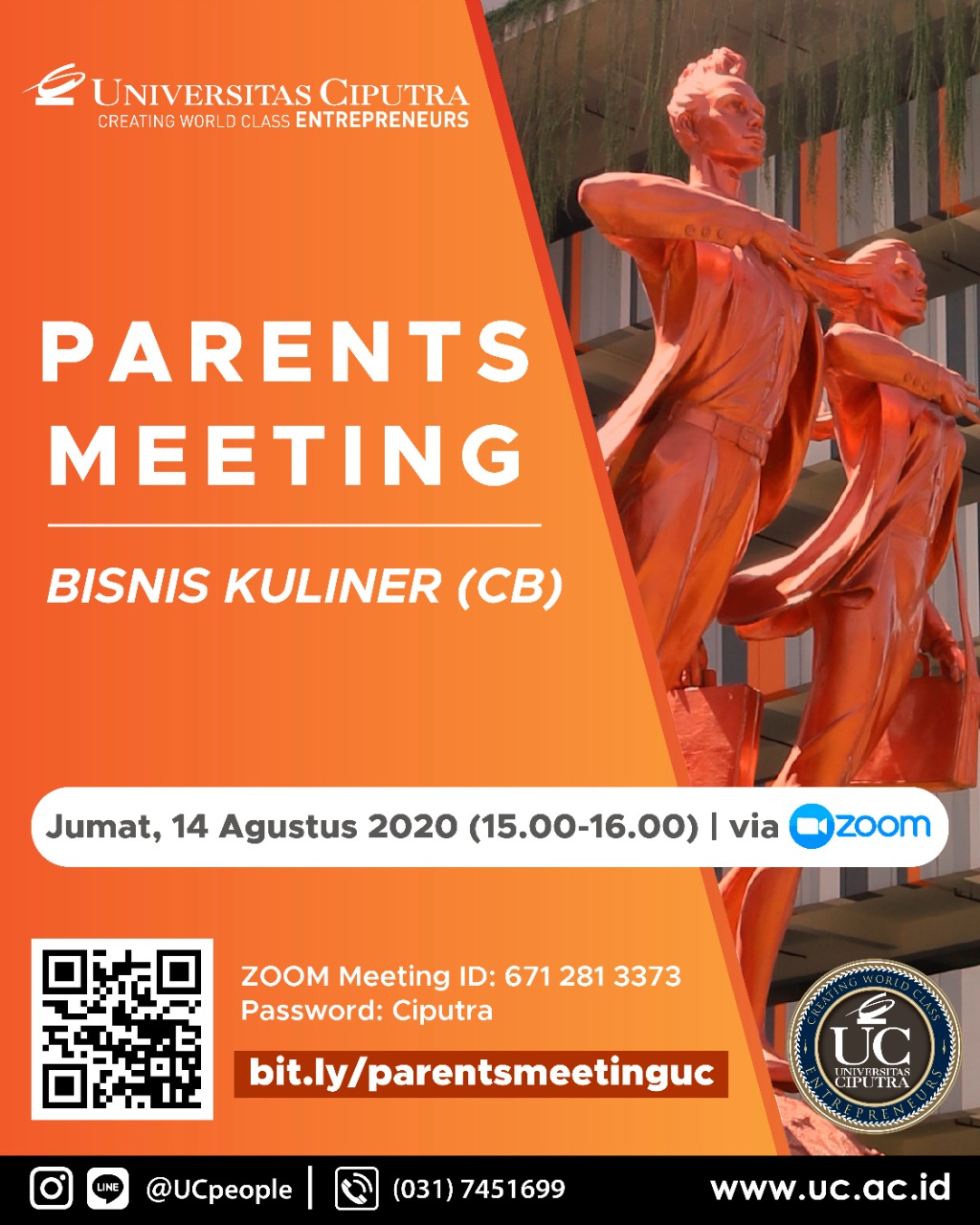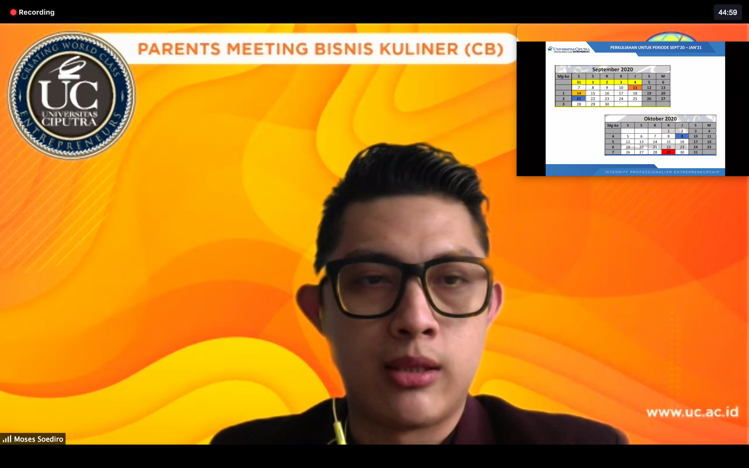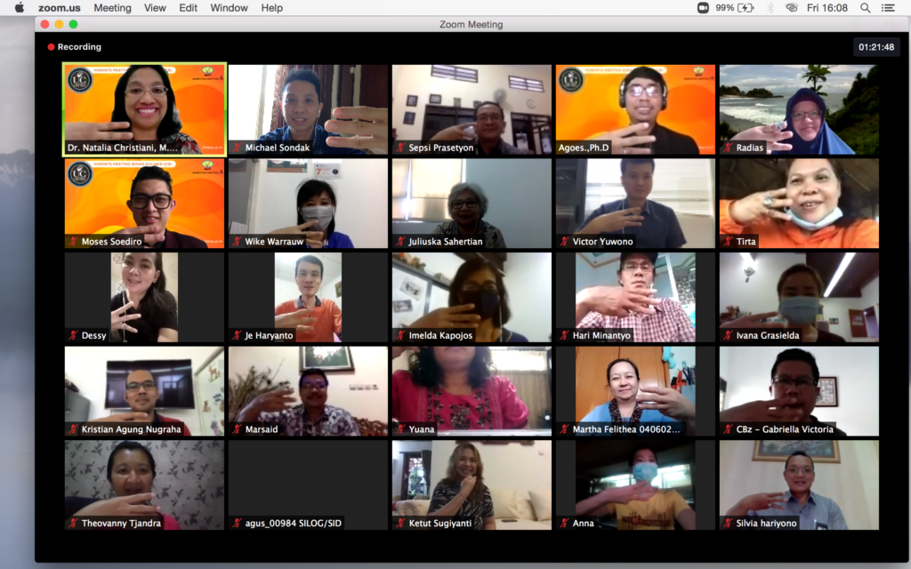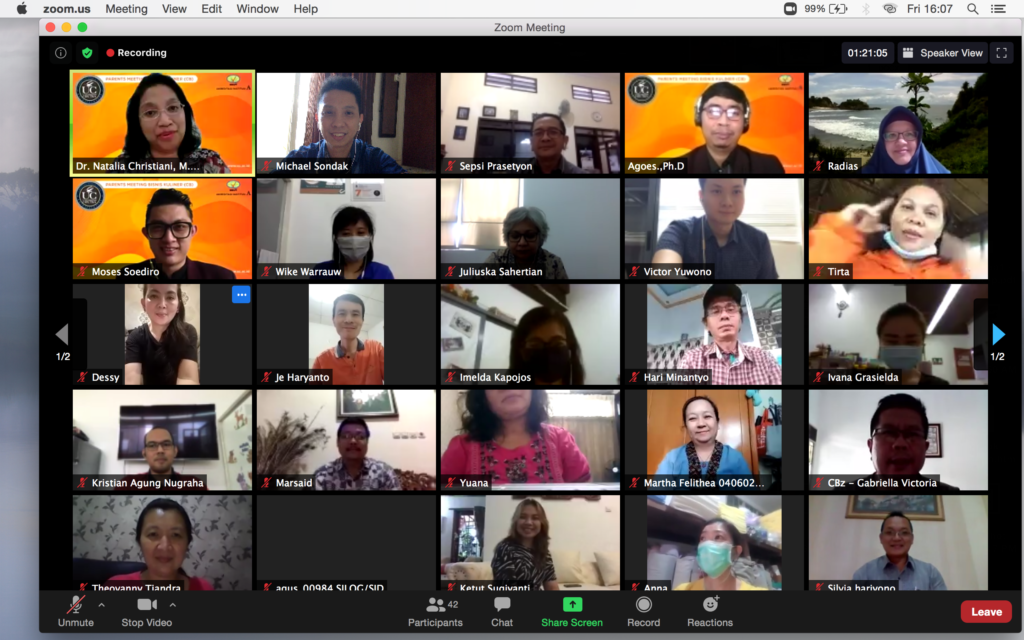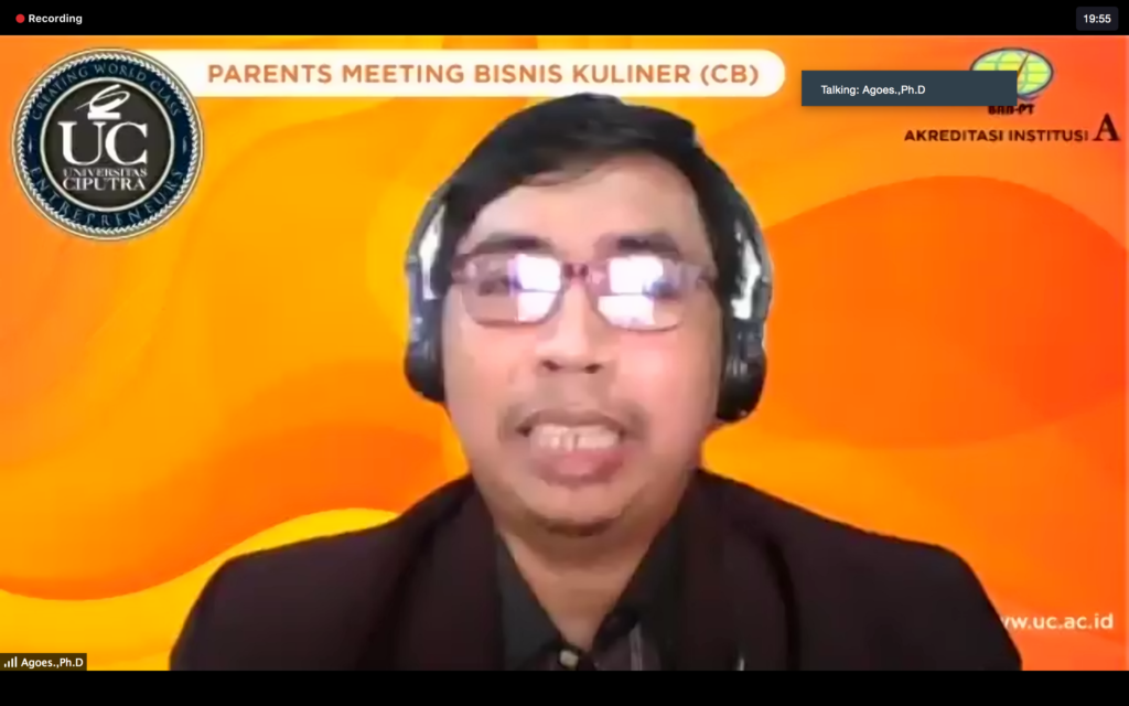 Hari Jumat, 14 Agustus 2020 berlangsung Parents Meeting untuk orang tua mahasiswa Tourism-Culinary Business (CBZ) angkatan 2016-2019.