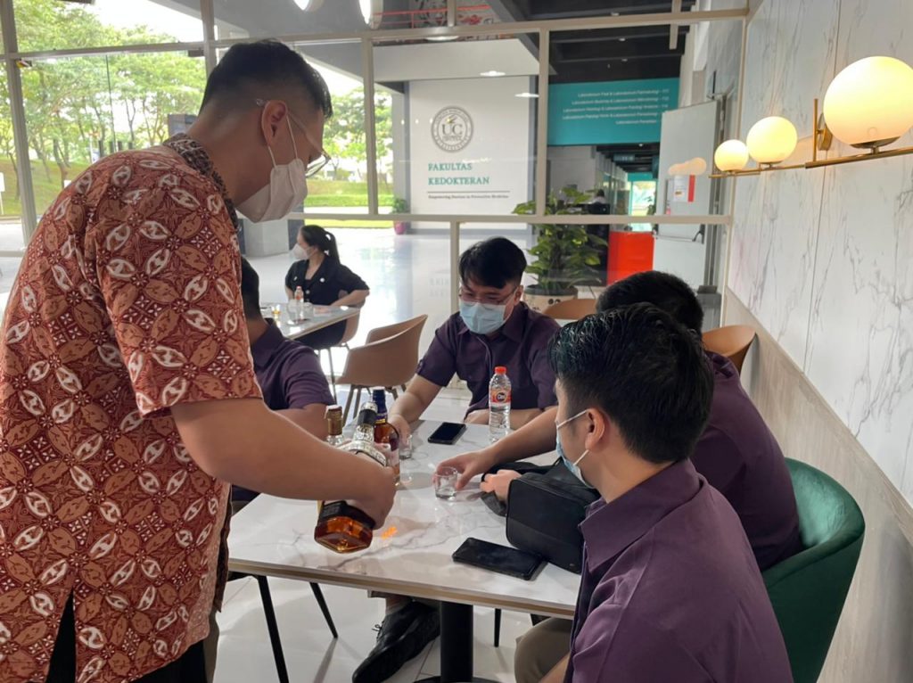 Perkuliahan tatap muka dalam mata kuliah Food Service memberikan materi kepada mahasiswa perbedaan liquor dan liqueur yang digunakan dalam mixed drink. Selain pengenalan kedua jenis minuman tersebut, mahasiswa juga dikenalkan dengan aroma dan rasa beberapa jenis minuman tersebut dalam “Liquor & Liqueur Tasting”