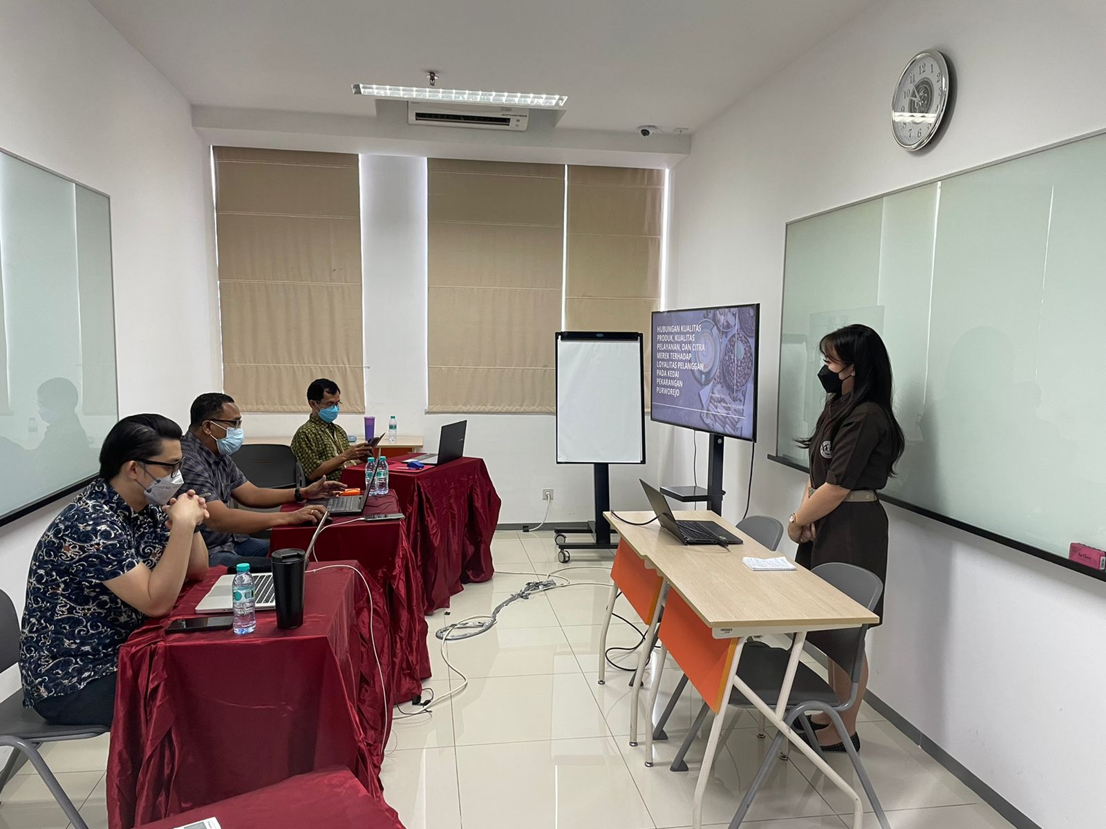 Sidang Tugas Akhir Gelombang 3 berlangsung di lantai 7, dimana mahasiswa yang mengambil topik product development harus mempresentasikan hasil kreasi produknya yang sudah melalui uji oraganoleptik, uji minat pasar serta penjualan. Mahasiswa diberi waktu untuk melakukan presentasi selama 8-10 menit, yang kemundian dilanjutkan dengan tanja jawab.