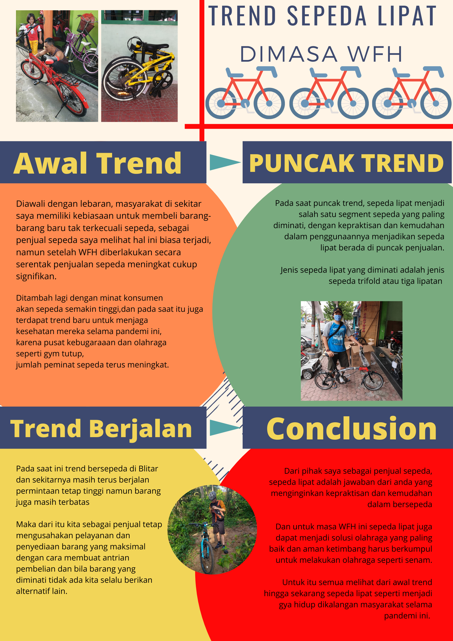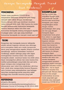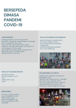 Pandemi Covid-19 ini membuat banyak adaptasi yang baru. Salah satunya, trend masyarakat untuk berolahraga khususnya bersepeda. Olah raga yang satu ini memang sudah digandrungi oleh banyak kalangan sejak dulu, bahkan sebelum pandemi Covid-19 ini. Namun semenjak pandemi Covid-19 ini, trend bersepeda seolah sangat drastis naik hingga dalam beberapa artikel, tercata harga sepedapun ikut-ikutan naik karena permintaan pasar yang sangat tinggi.