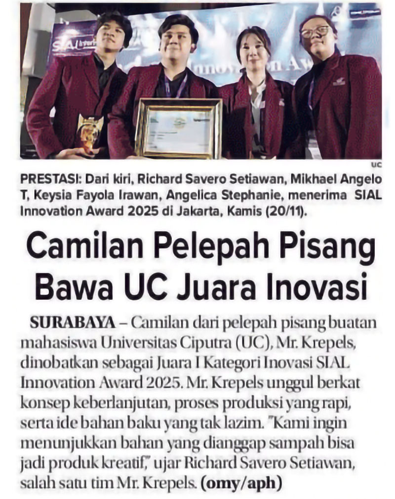 SURABAYA, November 22, 2025 – Students from Universitas Ciputra Surabaya have once again made their mark on the national stage by winning First Place in the Innovation Category at the prestigious SIAL Innovation Award 2025, held in Jakarta on Thursday, November 20.