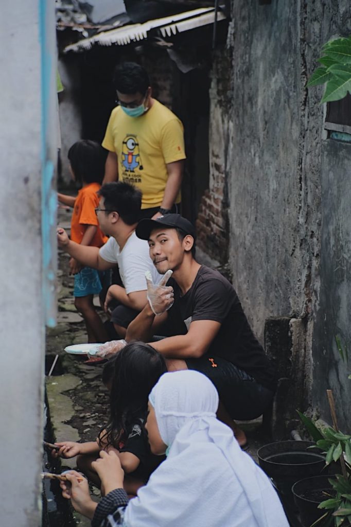 Mahasiswa FIKOM UC dan anak-anak Gang Dolly III membersihkan lingkungan