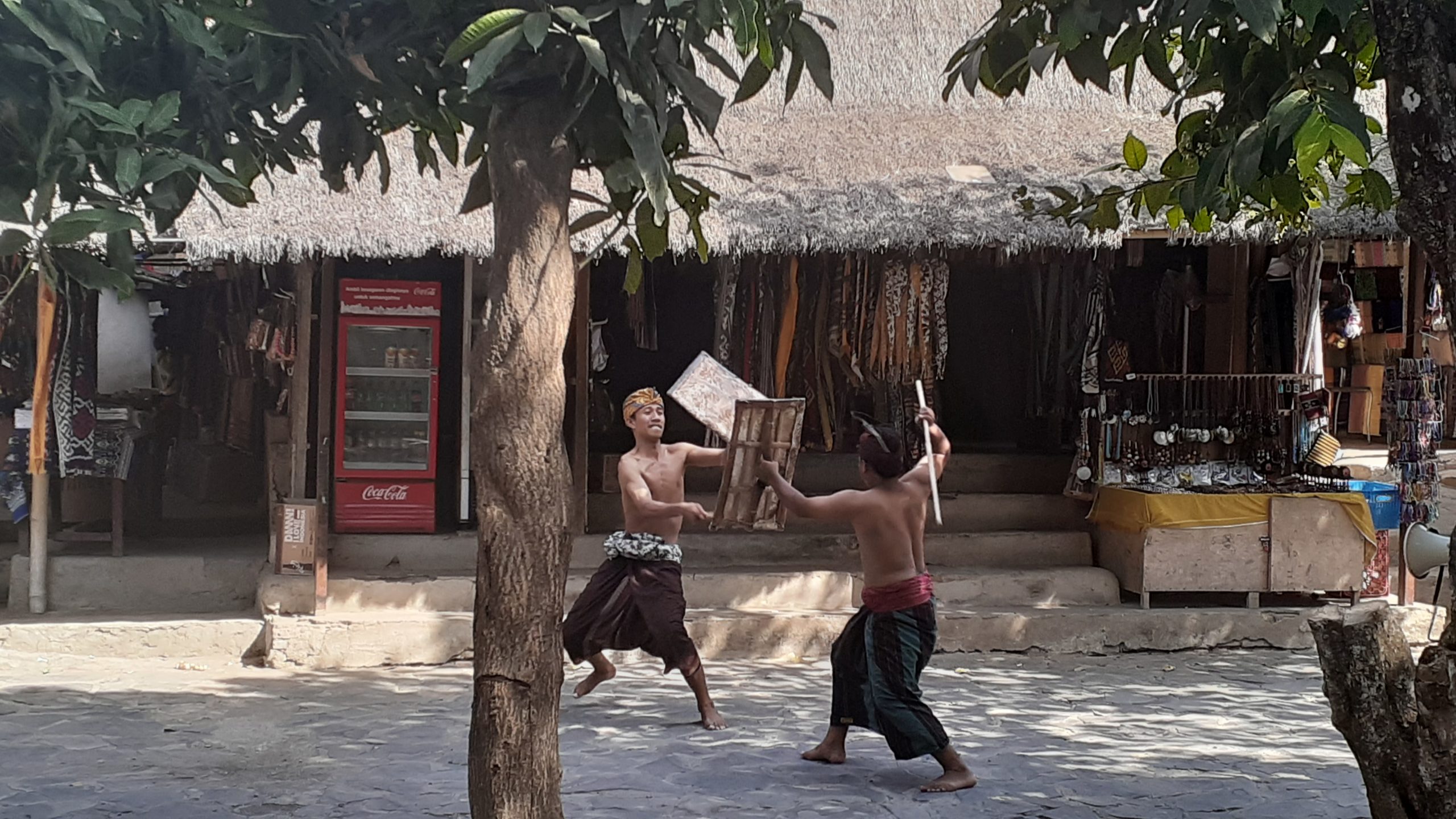 [Hadjar CN Malika] Pertunjukan Peresean yang ditampilkan bagi pengunjung di desa adat.Selain menikmati keindahan Pulau Lombok, ada baiknya juga kita ikut melihat budaya yang ada di dalamnya. Selain akan mendapat pengalaman yang berkesan, kita juga dapat membeli produk asli penduduk lokal yang akan berguna bagi penduduk Lombok untuk mengembangkan potensi wisatanya. Untuk berbaur dengan penduduk sambil belajar kebudayaan yang ada di Pulau Lombok, Anda bisa mengunjungi Desa Sade atau Rambitan. Ketika mengunjungi Desa Sade, Anda akan disambut dengan pertunjukan Peresean. Peresean adalah pertarungan antara dua orang Pepadu atau Pendekar dengan menggunakan tongkat rotan (penjalin) dan perisai yang terbuat dari kulit kerbau. Setelah itu, Anda akan diajak berjalan mengelilingi Desa Sade yang masih kental dengan budaya Suku Sasak. Rumah-rumah yang ada di Desa Sade masih beratap rumbai dan dibersihkan dengan kotoran sapi. Tidak lupa, Anda juga akan diajak untuk melihat proses pembuatan kain tenun asli Sasak. Anda juga bisa mencoba untuk memintal benang untuk dibuat kain menggunakan alat tradisional.