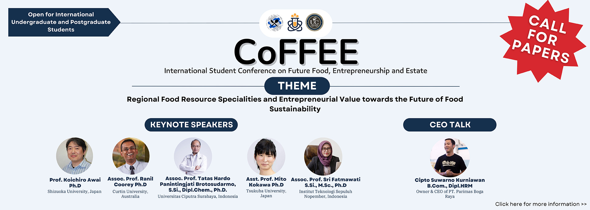 About CoFFEE“Conference on Future Foods, Entrepreneurship and Estate” is an international conference in the field of food technology organized by the Student Union Food Technology Program (SU FTP). Highlights in…