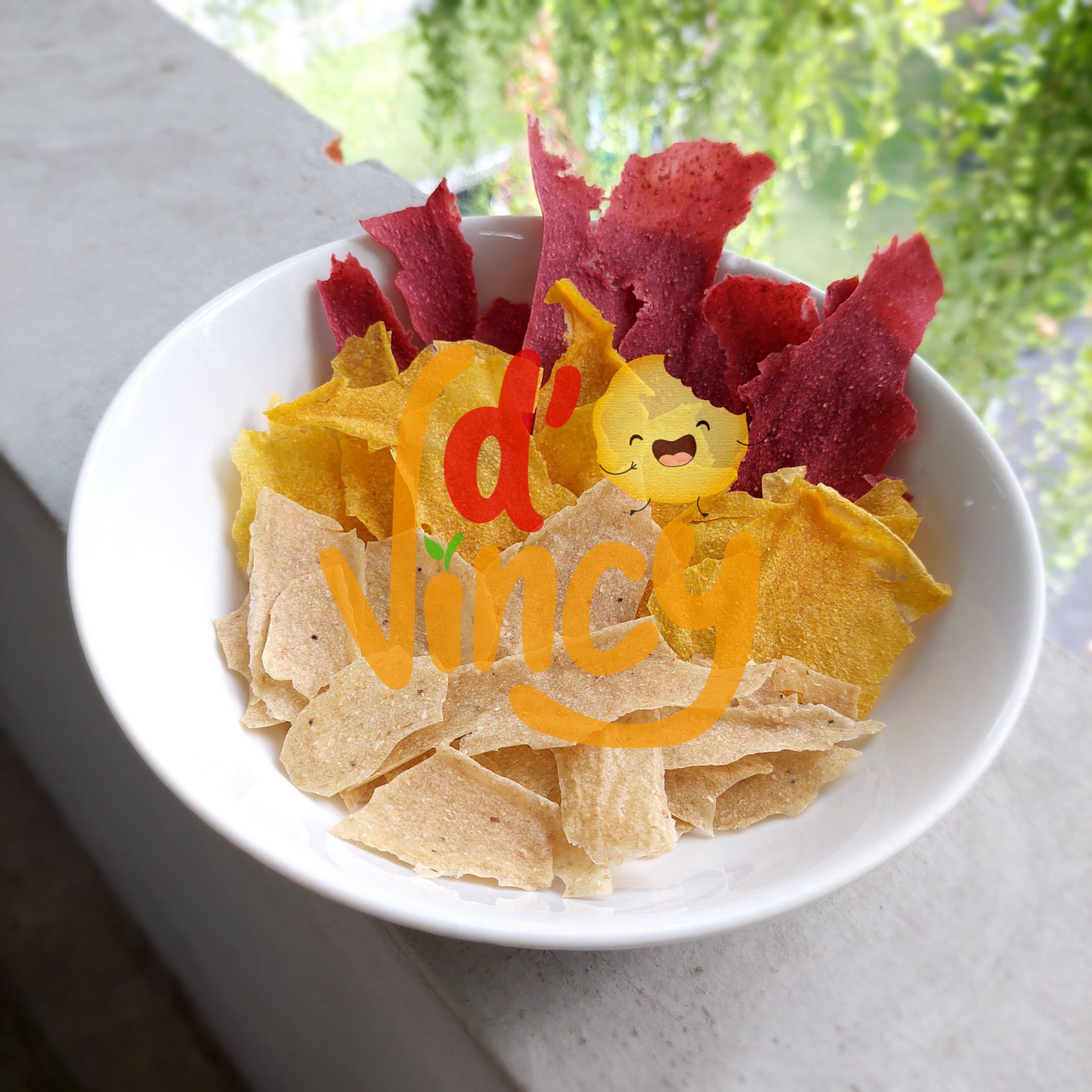 D’Vincy merupakan produk berbahan dasar buah yang dikeringkan menggunakan dehidrator sehingga menghasilkan tekstur yang crispy, dan ditambah dengan oat yang bisa mengenyangkan.