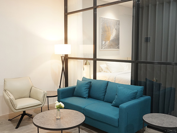 This facility replicates a hotel environment where students practice hospitality management, front office operations, and guest services.