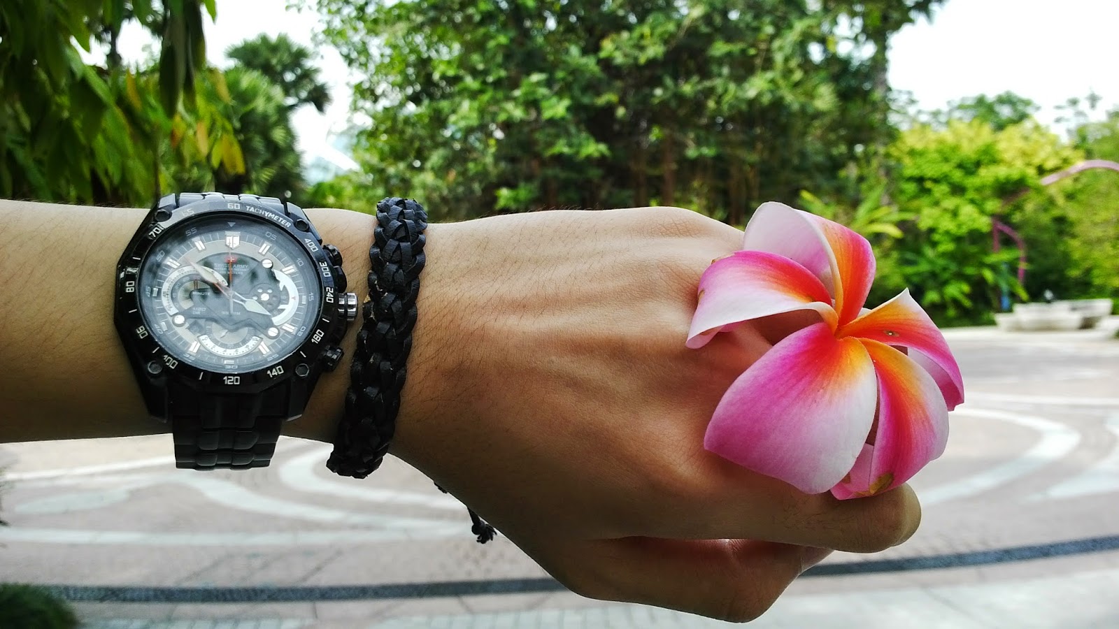 Pemandangan di belakang merupakan suasana Gardens By The Bay, untuk memasuki taman ini dibutuhkan peta yang dapat diambil di administration office terlebih dahulu, karena taman ini sangat luas sehingga kita dapat tersesat jika tidak menggunakan peta.
