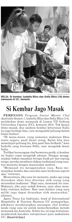 Info Gladi bersih Wisuda : 28 September 2012 09.00-12.00 (IBM) 13.30-16.30 (IFT, PSY, THM, INA, VCD) Auditorium Universitas Ciputra Info Wisuda : 29 September 2012 09.00-12.00 (IBM) 14.00-17.00 (IFT, PSY, THM, INA, VCD) Auditorium Universitas Ciputra Dress code untuk wisudawan adalah pakaian formal (pria: hem/batik,celana panjang; wanita: kebaya atau hem dan rok panjang). Tidak boleh…