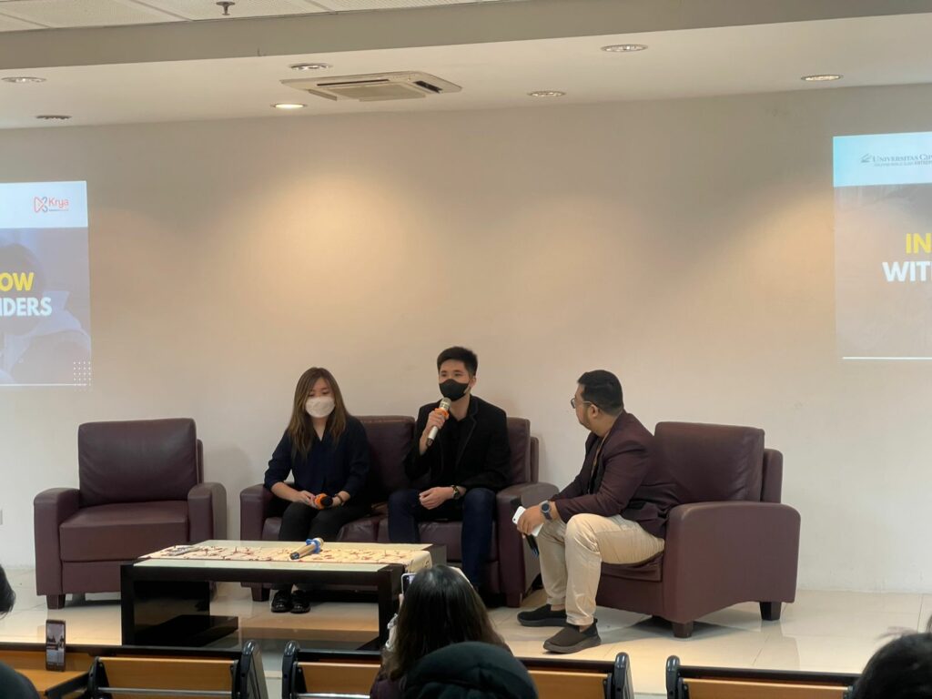 Kolaborasi Uc Venture dengan Krya diwujudkan melalui dua sesi kegiatan, yaitu sesi talkshow dan sesi campus tour. Pada sesi talkshow, UC Ventures selaku tuan rumah menghadirkan narasumber para startup founder besutan Universitas Ciputra, yaitu Fielien selaku founder dari Zemangat.id dan Sherwin selaku founder dari Potalife.id.