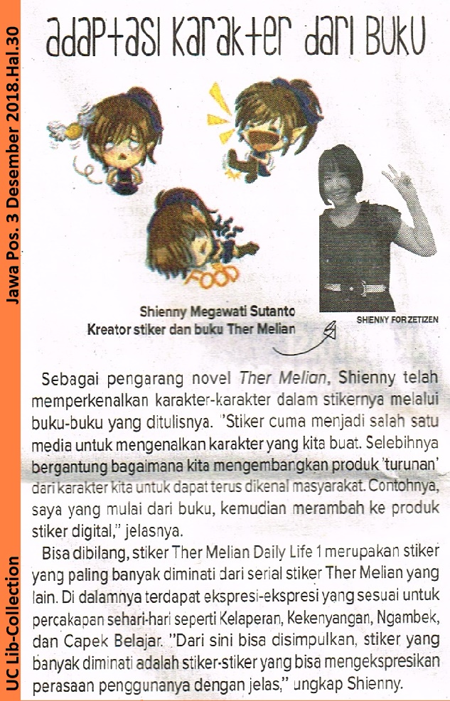 Dosen Universitas Ciputra sekaligus pengarang novel Ther Melian, Shienny telah memperkenalkan karakter-karakter dalam stikernya melalui buku-buku yang ditulisnya. “Stiker cuma menjadi salah satu media untuk mengenalkan karakter yang kita buat. Selebihnya bergantung bagaimana kita mengembangkan produk ‘turunan’ dari karakter kita untuk dapat terus dikenal masyarakat. Contohnya, saya yang mulai dari buku, kemudian merambah ke produk stiker digital,” jelas Dosen Universitas Ciputra ini.
