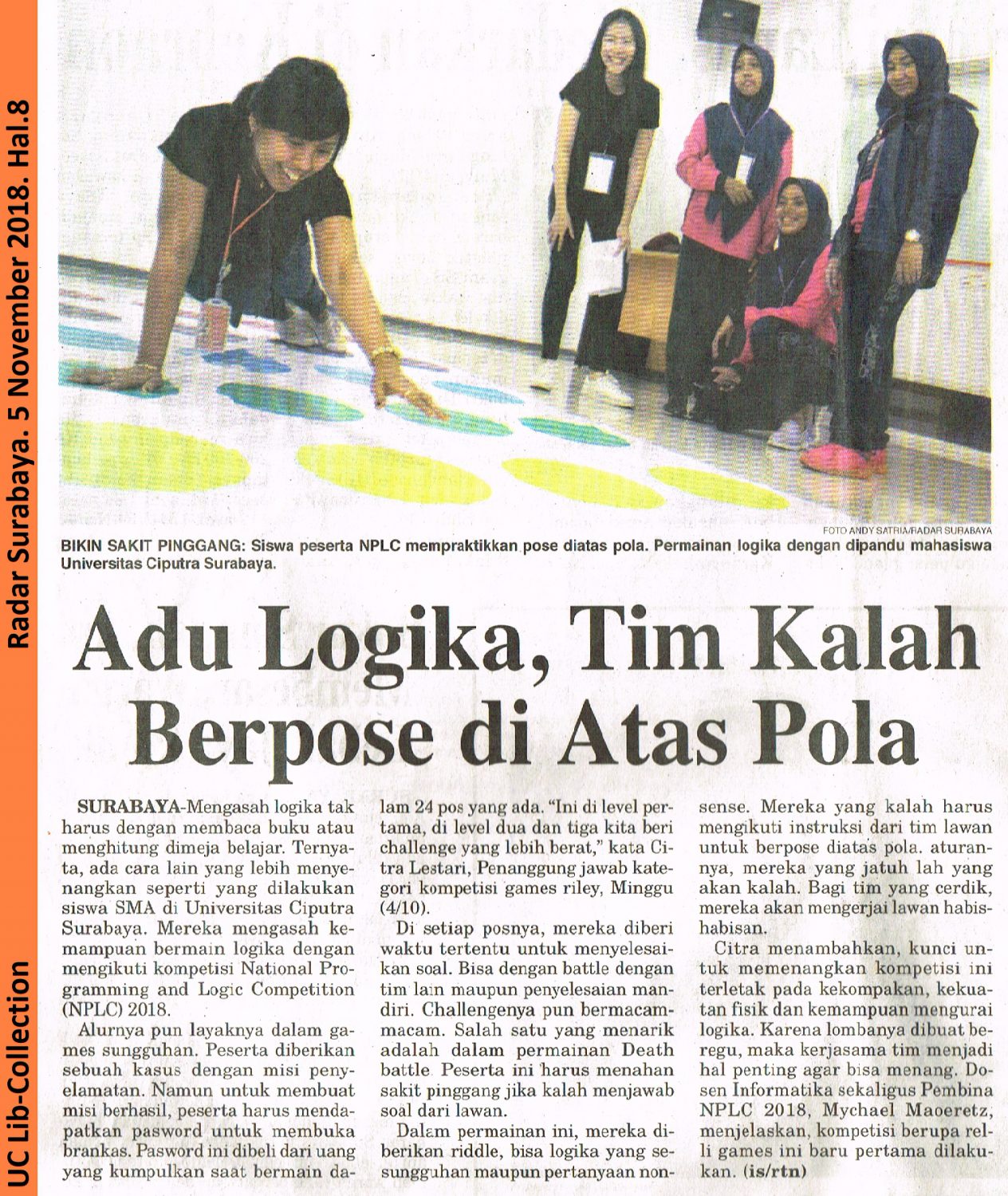 SURABAYA – Mengasah logika tak harus dengan membaca buku atau menghitung dimeja belajar. Ternyata, ada cara lain yang lebih menyenangkan seperti yang dilakukan siswa SMA di Universitas Ciputra Surabaya. Mereka mengasah kemampuan bermain logika dengan mengikuti kompetisi National Progamming and Logic Competition (NPLC) 2018.