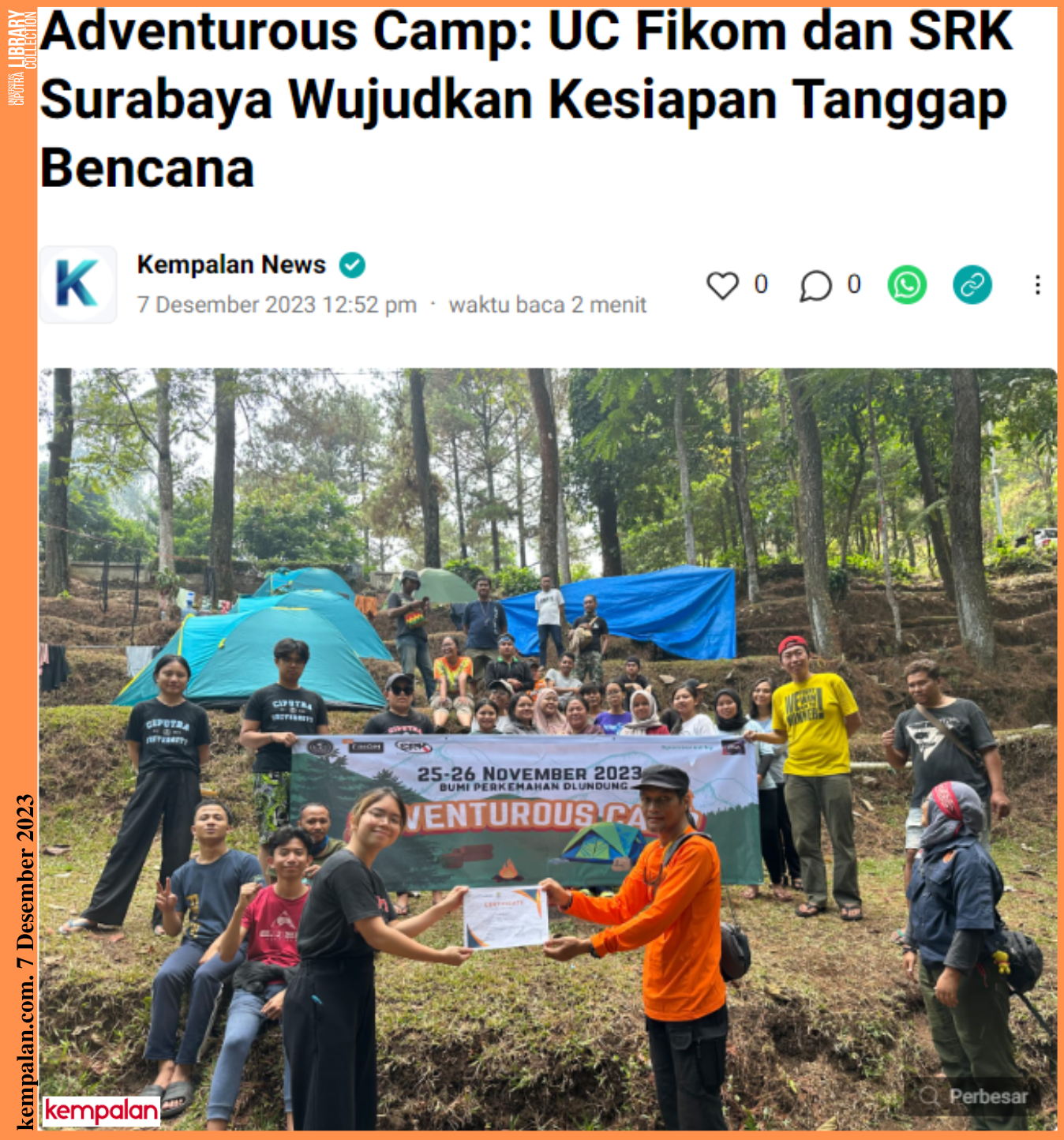 Sumber:https://kempalan.com/2023/12/07/adventurous-camp-uc-fikom-dan-srk-surabaya-wujudkan-kesiapan-tanggap-bencana/