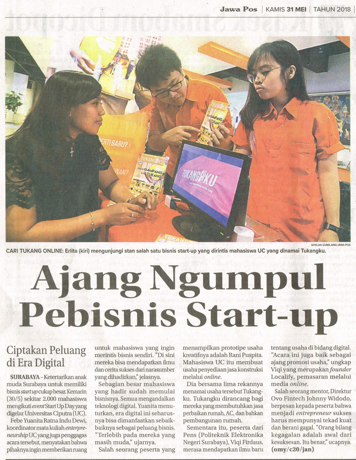 SURABAYA – Ketertarikan anak muda Surabaya untuk memiliki bisnis start up cukup besar. Kemarin (30/4) sekitar 2.000 mahasiswa mengikuti event Start Up Day yang digelar Universitar Ciputra (UC).