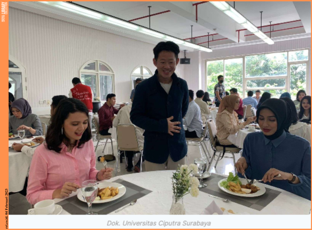 KBRN, Surabaya : Program Studi Hotel and Tourism Business (HTB) Universitas Ciputra Surabaya dipercaya memberikan pelatihan Table Manner untuk Cak Ning Surabaya seperti yang tertuang pada surat resmi dari Ketua Umum Paguyupan Cak Ning Surabaya, Sareza Buana Febrian, S.T..