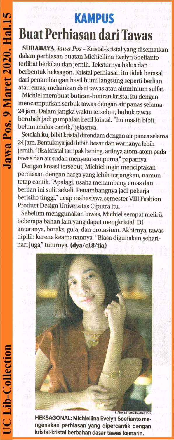 Dengan kreasi tersebut, Michiel ingin menciptakan perhiasan dengan harga yang lebih terjangkau, namun tetap cantik. “Apalagi, usaha menambang emas dan berlian ini sulit sekali. Penambangnya jadi pekerja berisiko tinggi,” ucap mahasiswa semester VIII Fashion Product Design Universitas Ciputra itu.