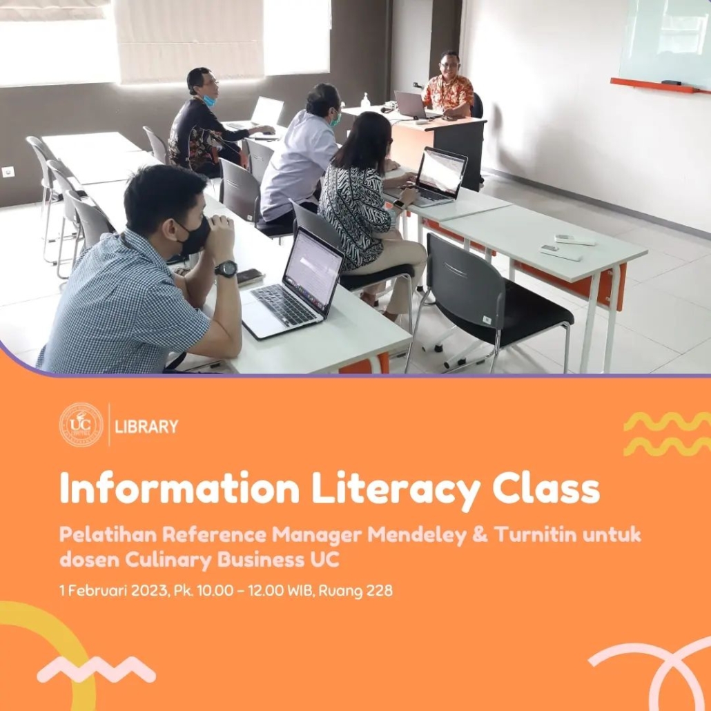 Informasi Literacy Class: Pelatihan Reference Manager Mendeley & Turnitin untuk dosen Culinary Business UC