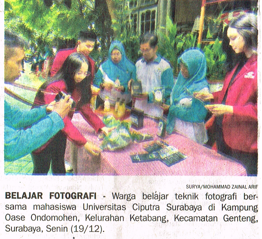 Kampung Oase Ondomohen Menuju Kampung Wisata Edukasi. Warga Mulai Belajar Bahasa Inggris dan Fotografi. Surya. 20 Desember 2022. Hal. 1. HTB Universitas Ciputra