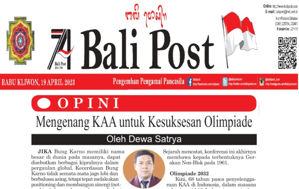Mengenang KAA Untuk Kesuksesan Olimpiade. Balipost. 19 April 2023
