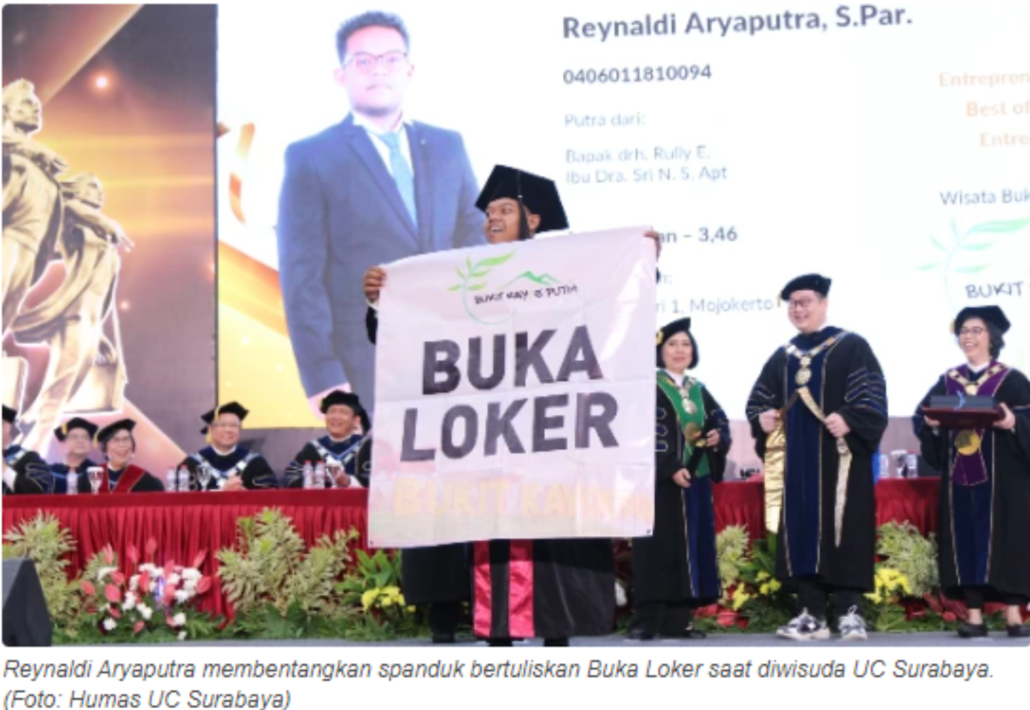 Viral, Usai Diwisuda, CEO Destinasi Wisata Bentangkan Spanduk Buka Loker. ketik.co.id. 15 Oktober 2023