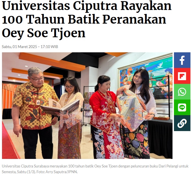 Warisan Batik Peranakan Oey Soe Tjoen Abadi Dalam Karya Buku Besutan Universitas Ciputra. timesindonesia.co.id. 1 Maret 2025