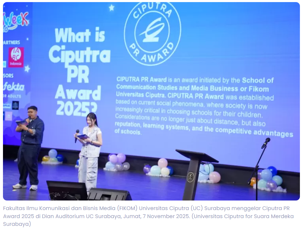 Ciputra PR Award 2025 Apresiasi Praktisi Public Relations Sekolah di Jatim. surabaya.suaramerdeka.com. 7 November 2025
