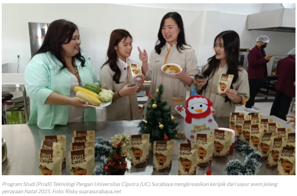 Sambut Natal 2025, UC Surabaya Kreasikan Sayur Asem Jadi Kripik Tanpa Digoreng. www.suarasurabaya.net. 14 Desember 2025