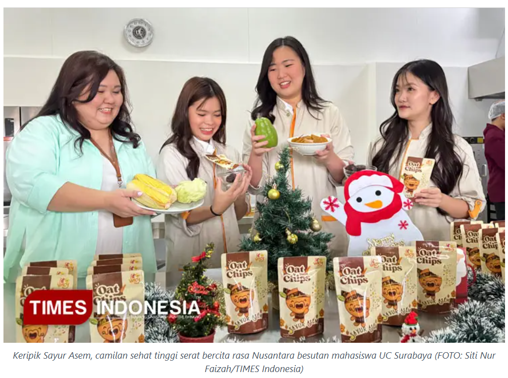 Inovasi Mahasiswa UC Surabaya: Keripik Sayur Asem, Cemilan Sehat Bercita Rasa Nusantara. timesindonesia.co.id. 14 Desember 2025