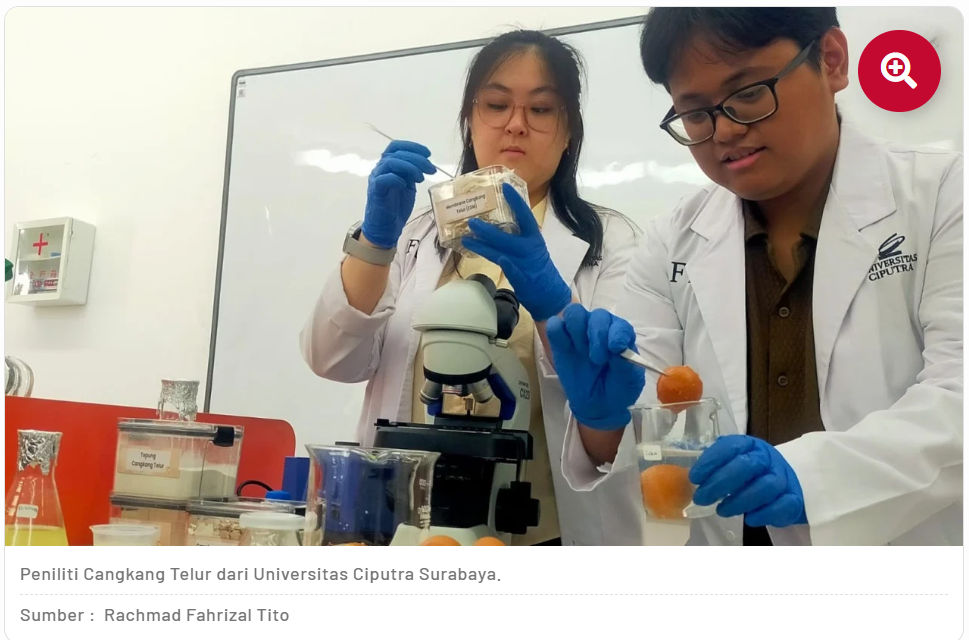 Peneliti Universitas Ciputra Surabaya Sulap Cangkang Telur Jadi Kolagen Halal. jatim.viva.co.id. 3 Februari 2026