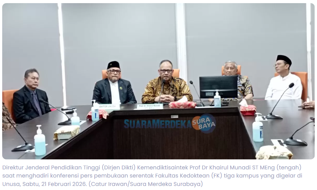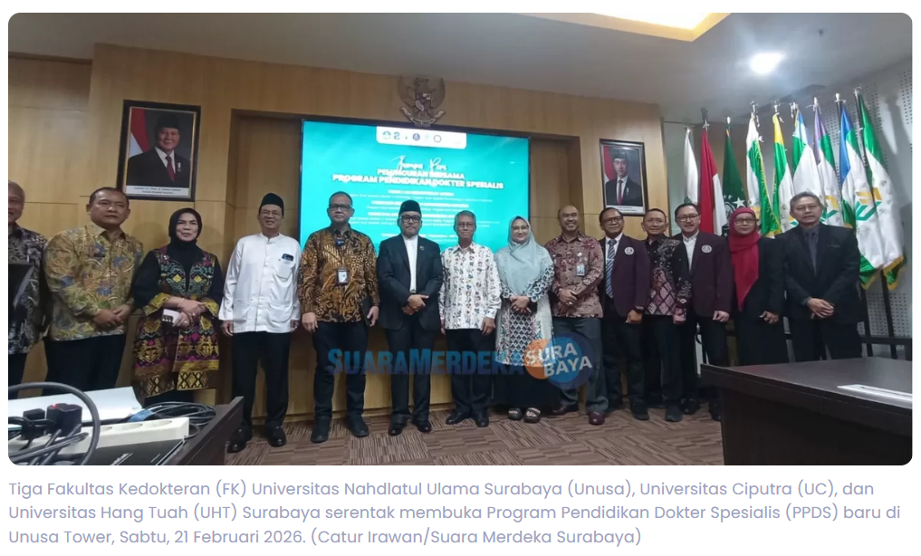 FK Unusa, UC, dan UHT Buka PPDS Baru, Percepat Pemenuhan Dokter Spesialis. surabaya.suaramerdeka.com. 22 Februari 2026