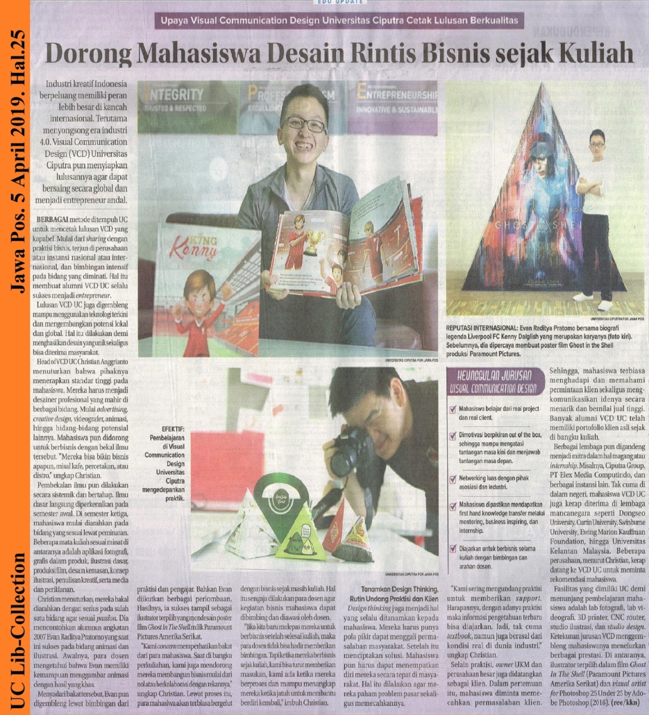 Upaya Visual Communication Design Universitas Ciputra Cetak Lulusan Berkualitas_Dorong Mahasiswa Desain Rintis Bisnis Sejak Kuliah. Jawa Pos. 5 April 2019.Hal.25.Evan Raditya Pratomo