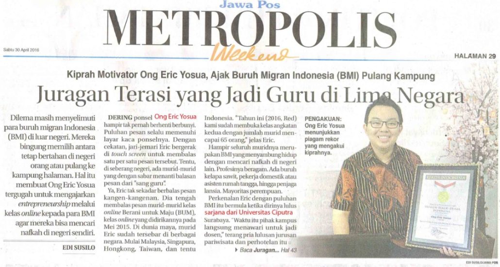 Mahasiswa CSR Siap Terjun ke Lapangan. Jawa Pos. 30 April 2016.Hal.30