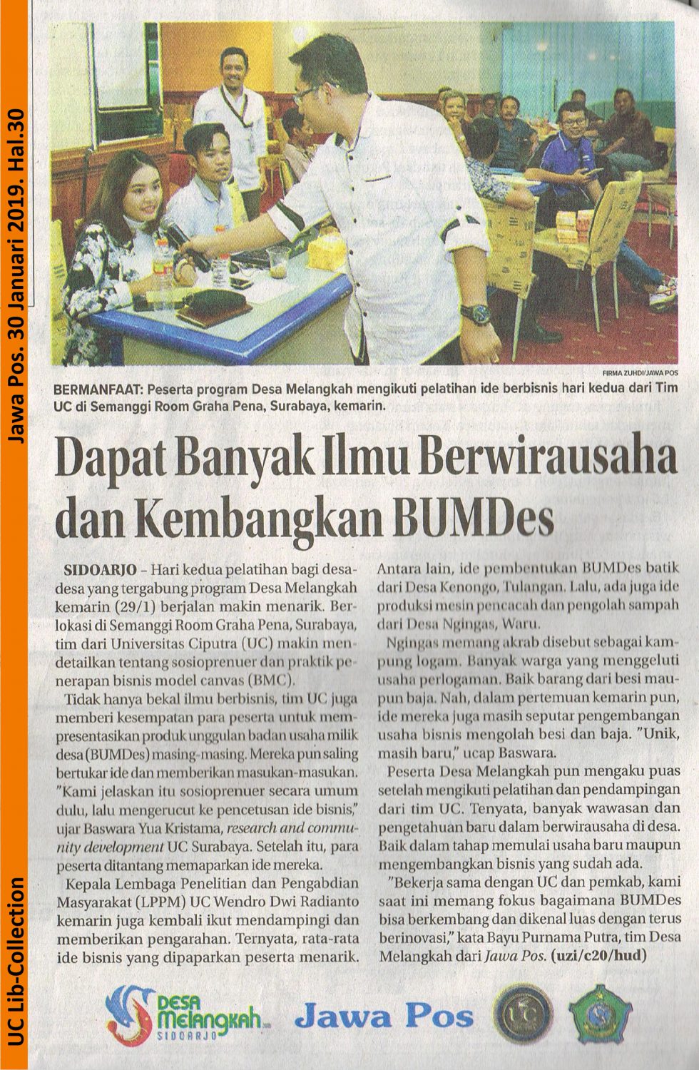 SIDOARJO – Hari kedua pelatihan bagi desa-desa yang tergabung program Desa Melangkah kemarin (29/1) berjalan makin menarik. Berlokasi di Semanggi Room Graha Pena, Surabaya,tim dari Universitas Ciputra (UC) makin men.