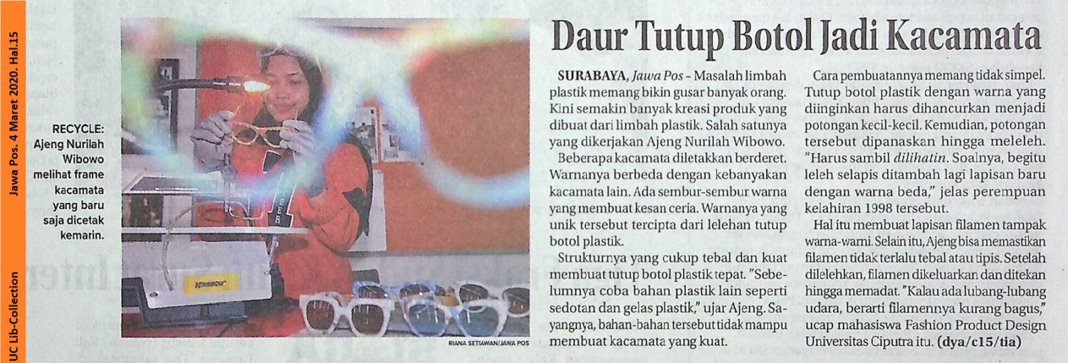 Strukturnya yang cukup tebal dan kuat membuat tutup botol plastik tepat. “Sebelumnya coba bahan plastik lain seperti sedotan dan gelas plastik,” ujar Ajeng Sayangnya, bahan-bahan tersebut tidak mampu membuat kacamata yang kuat.