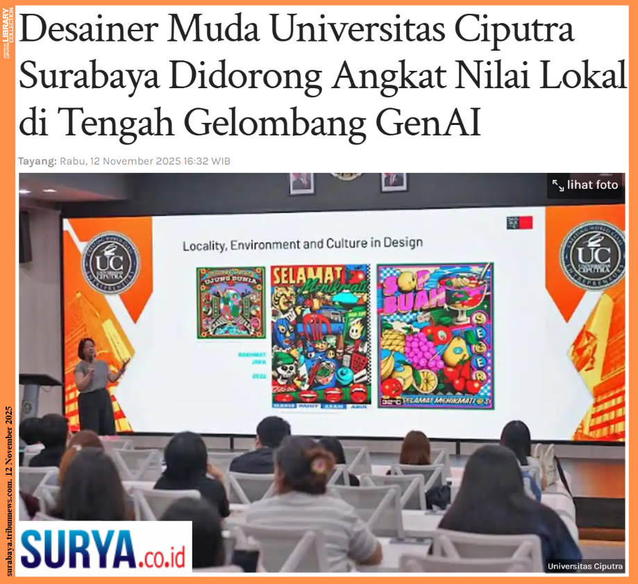 SURYA.co.id | SURABAYA – Di tengah cepatnya adopsi Generative Artificial Intelligence (GenAI) dalam industri kreatif global, Universitas Ciputra (UC) Surabaya mengingatkan pentingnya kesadaran nilai lokal dalam proses desain melalui diskusi bertajuk ‘The Role of Your Design Positionality and Pluriversality in the Era of GenAI’, Rabu (12/11/2025).