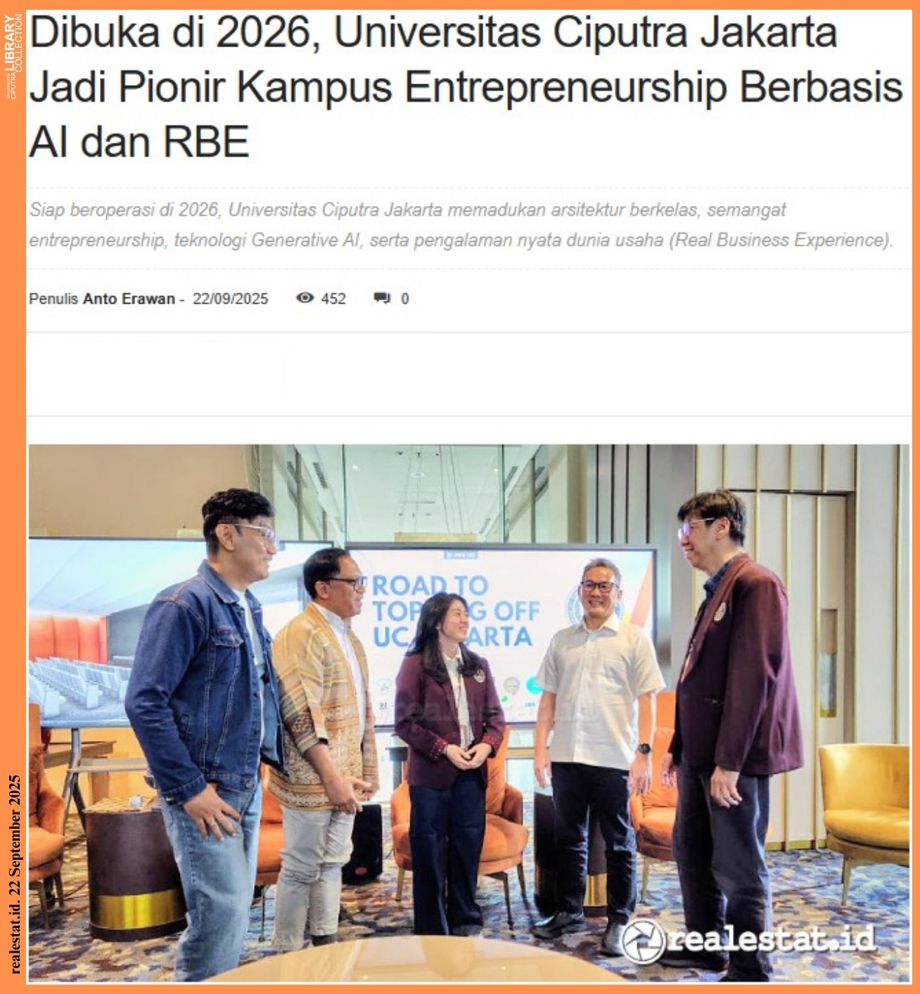 Sumber: https://www.realestat.id/berita-properti/dibuka-di-2026-universitas-ciputra-jakarta-jadi-pionir-kampus-entrepreneurship-berbasis-ai-dan-rbe/