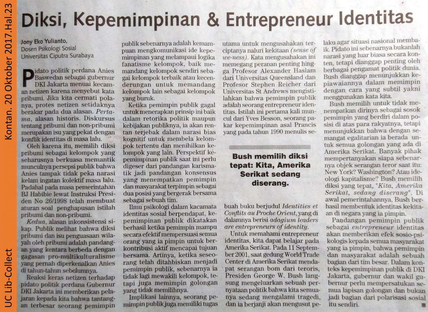 Oleh: Jony Eko Yulianto (Dosen Psikologi Sosial, Universitas Ciputra Surabaya)