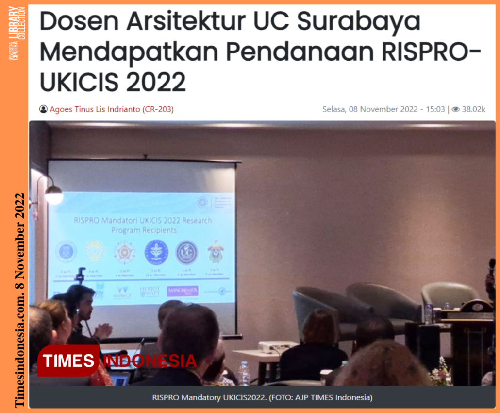 Sumber: https://timesindonesia.co.id/indonesia-positif/435446/dosen-arsitektur-uc-surabaya-mendapatkan-pendanaan-risproukicis-2022