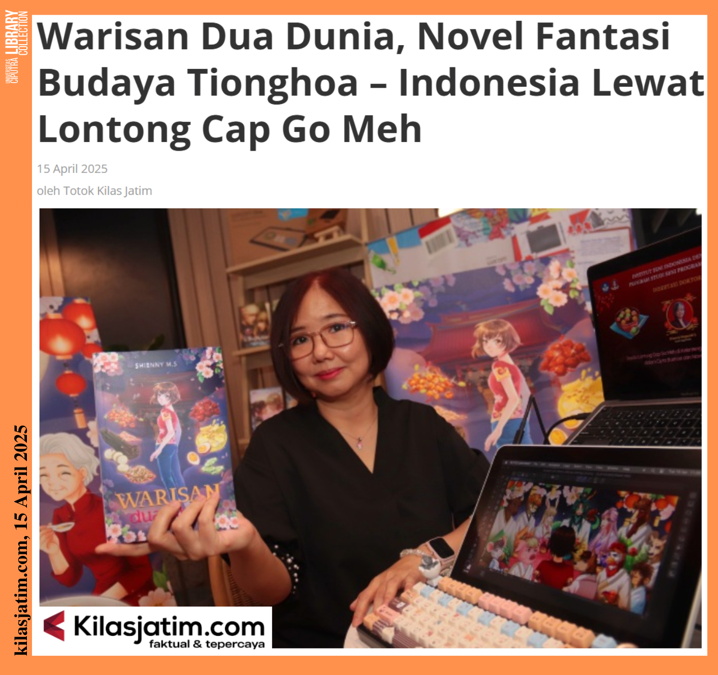 KILASJATIM.COM, SURABAYA – A plate of Lontong Cap Go Meh, typically containing sliced rice cake, coconut milk sauce, and Opor Ayam (chicken soup), is a staple dish on the 15th day after the Chinese New Year celebration, traditionally celebrated by the Chinese community. Through Lontong Cap Go Meh, Dr Shienny Megawati Sutanto, S.Sn., M.M., M.Ds., a lecturer in Visual Communication Design at Ciputra University (UC), released a fantasy novel entitled: A Heritage of Two Worlds. The novel tells the story of the beauty of Chinese-Indonesian culture.