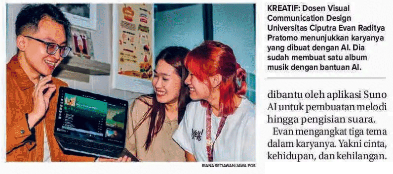 Dosen Universitas Ciputra Pakai AI untuk Buat 18 Lagu. Jawa Pos. 30 Januari 2025. Hal.15