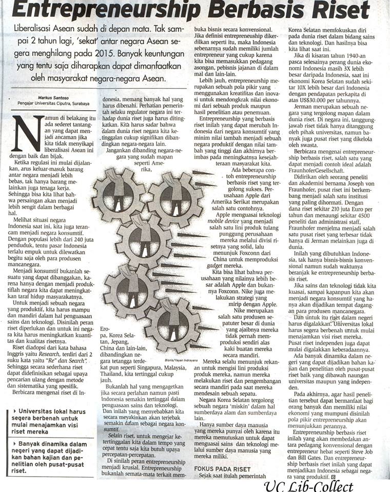 Entrepreneurship yang berbasis riset inilah yang dapat merubah Indonesia dari negara konsumtif yang minim nilai tambah menjadi sebuah negara produktif dengan nilai tambah yang tinggi dan akhirnya berimbas pada meningkatnya kesejahterahan masyarakat kita