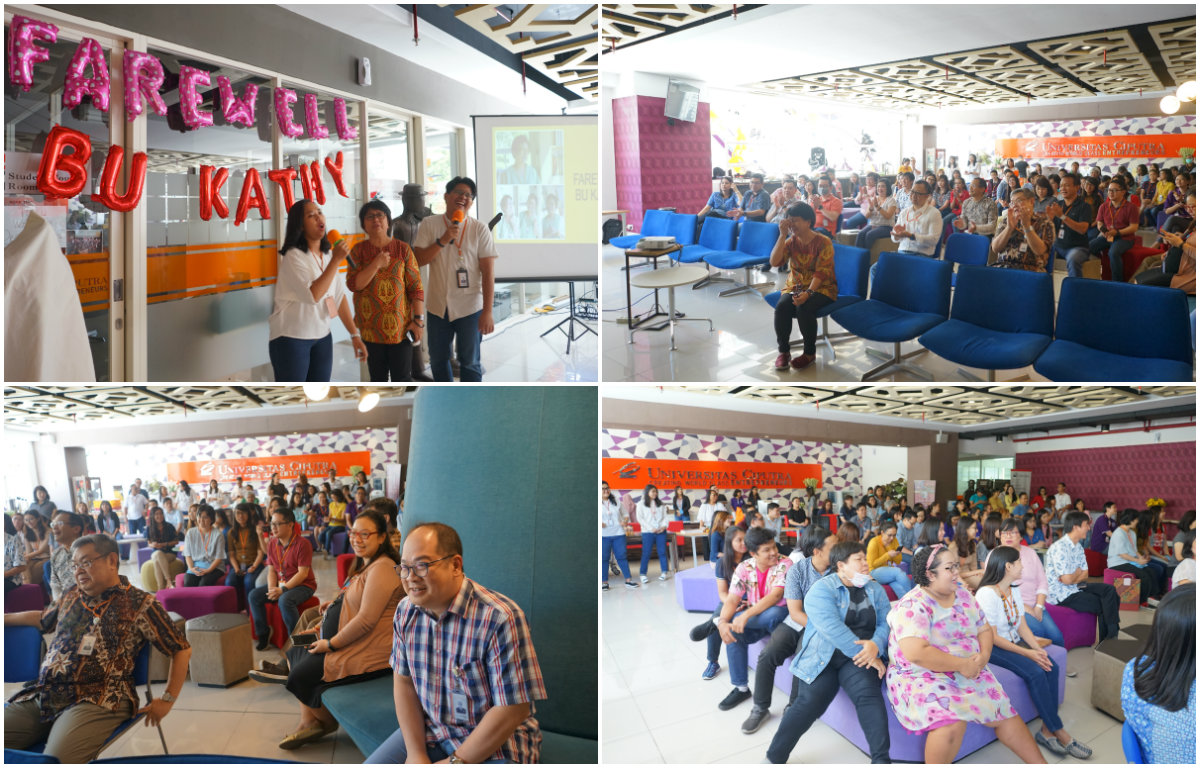 Terima kasih atas pengabdian Ibu Kathy sebagai “pilot UC Library” yang luar biasa. Perpustakaan Universitas Ciputra Surabaya kini mendapat akreditasi A berkat pimpinan Bu Kathy selaku Kepala Biro Perpustakaan. Saat ini Bu Kathy pensiun dari pekerjaan, tapi tidak akan pernah pensiun dari pengabdian. Tetap berkarya Bu Kathy, sukses selalu ???