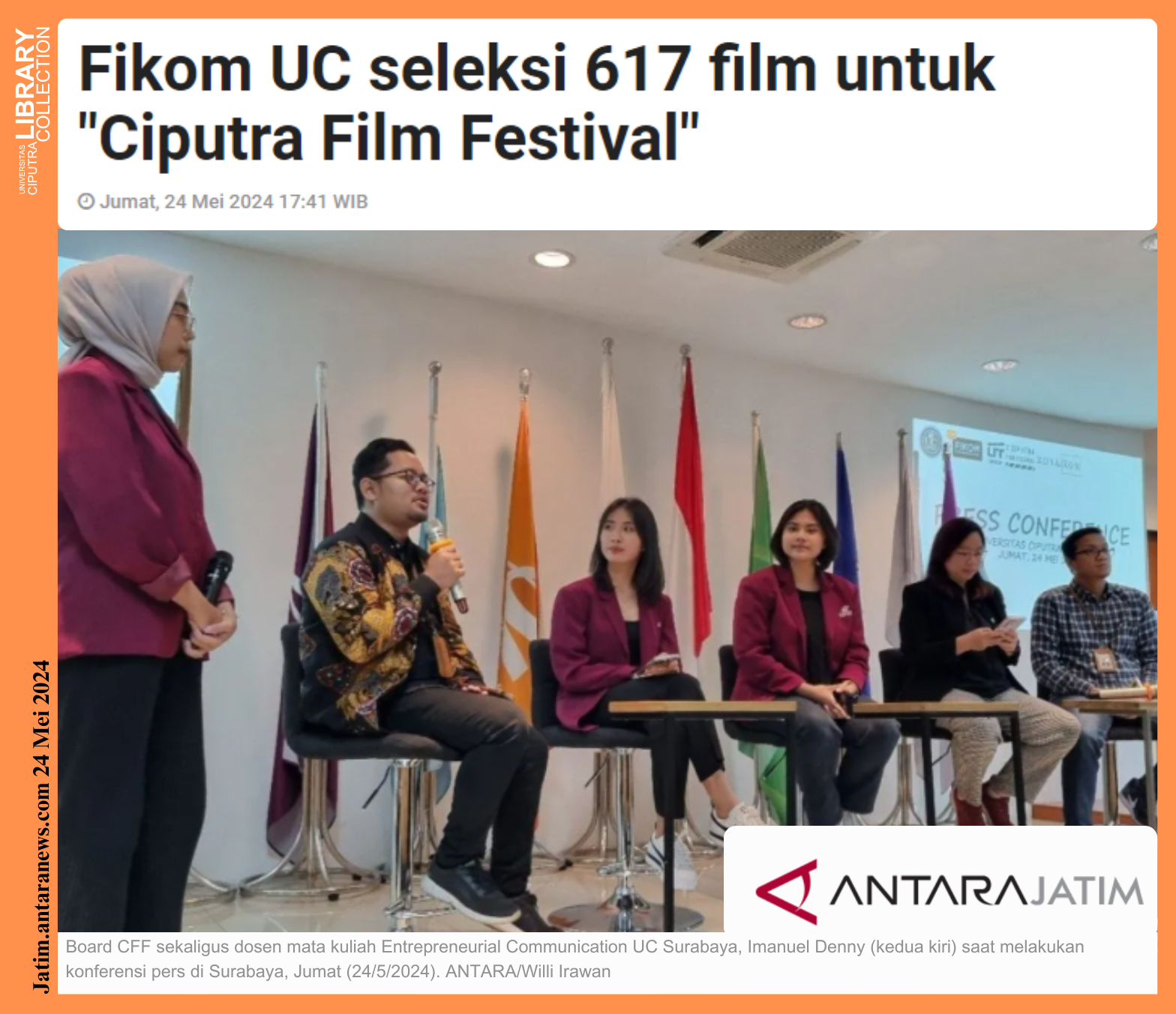 Sumber : https://jatim.antaranews.com/berita/789444/fikom-uc-seleksi-617-film-untuk-ciputra-film-festival